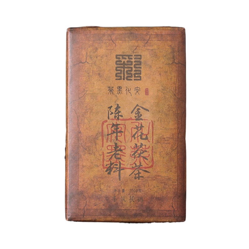 安化黑茶2公斤手筑茯砖茶天尖金花系列陈年老茶黑金