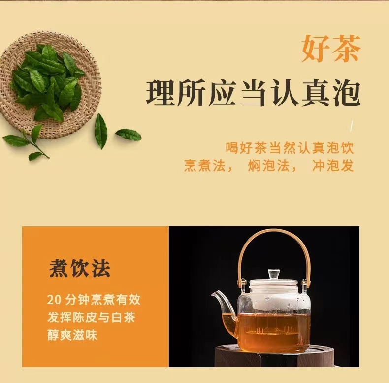 原料与配料 :福鼎大白毫、新会橙皮
