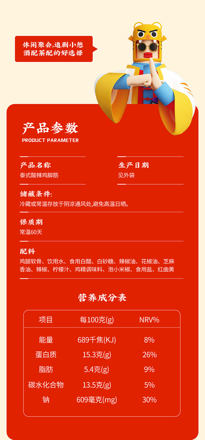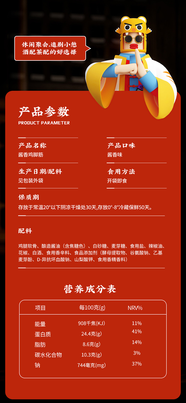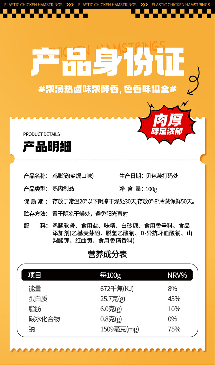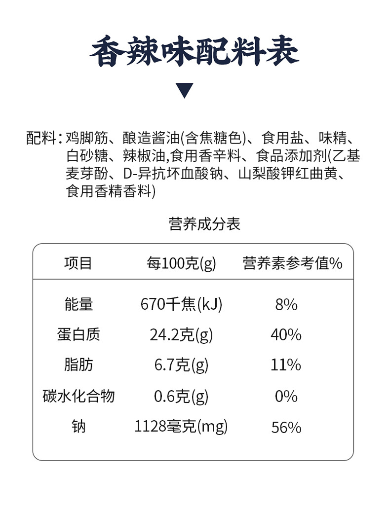 鸡脚筋、食用盐、白酒、香辛料、食品添加剂等详情请看包装