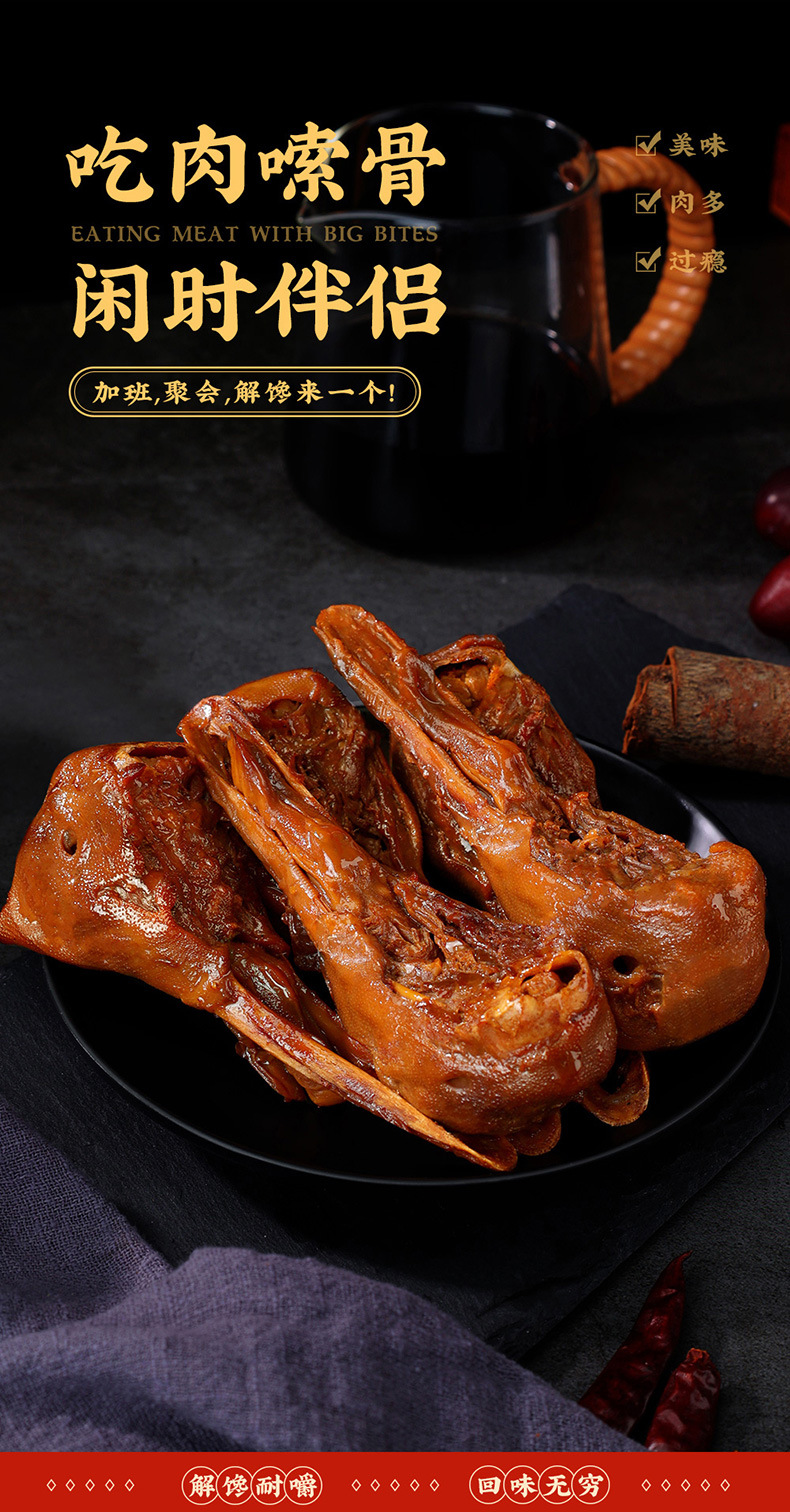 商品名称:真庄广东梅州客家酱香麻辣鸭头鸭下巴熟食卤味追剧下酒鸭零食小吃