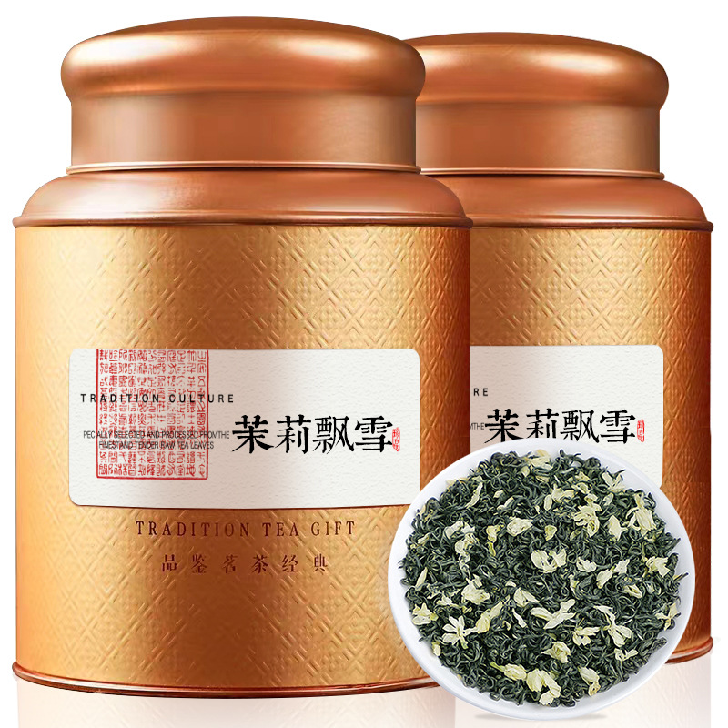 新茶茉莉花茶浓香型系茉莉飘雪茶叶绿茶毛峰碧螺春口粮茶罐装