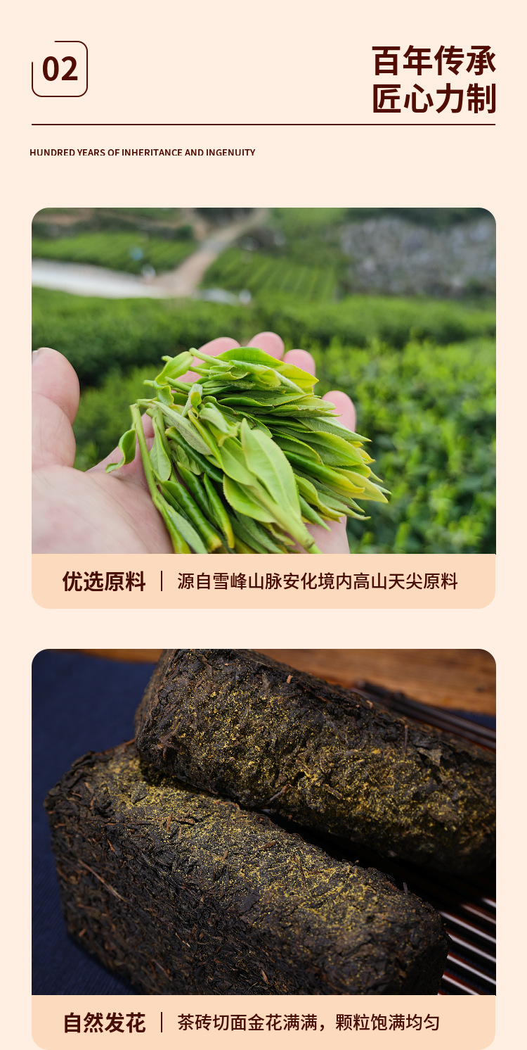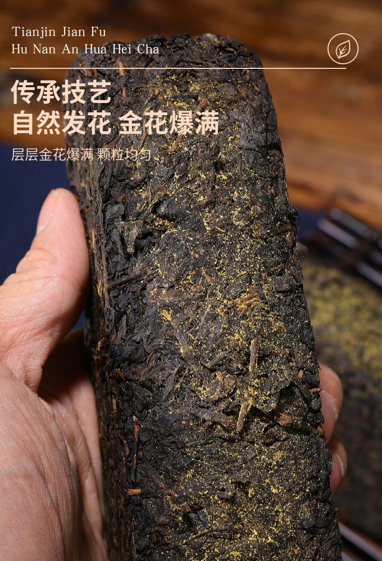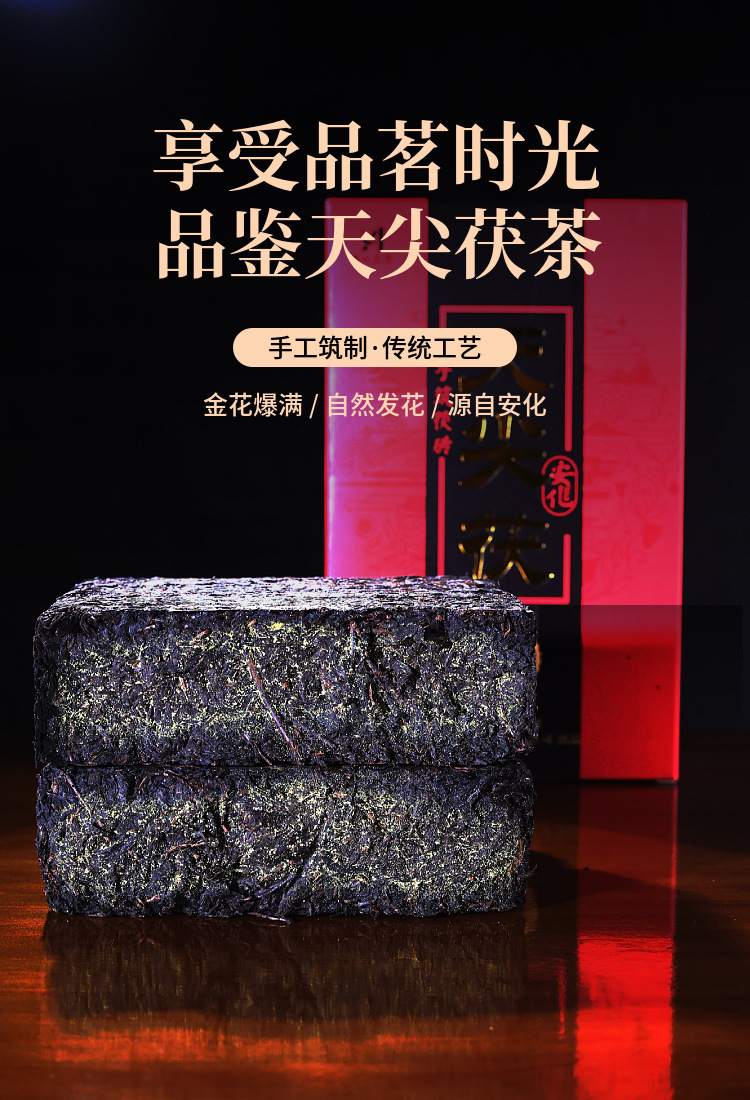 上游热销安化黑茶天尖茯砖茶2斤装黑金茶金花系列盒装安化金花