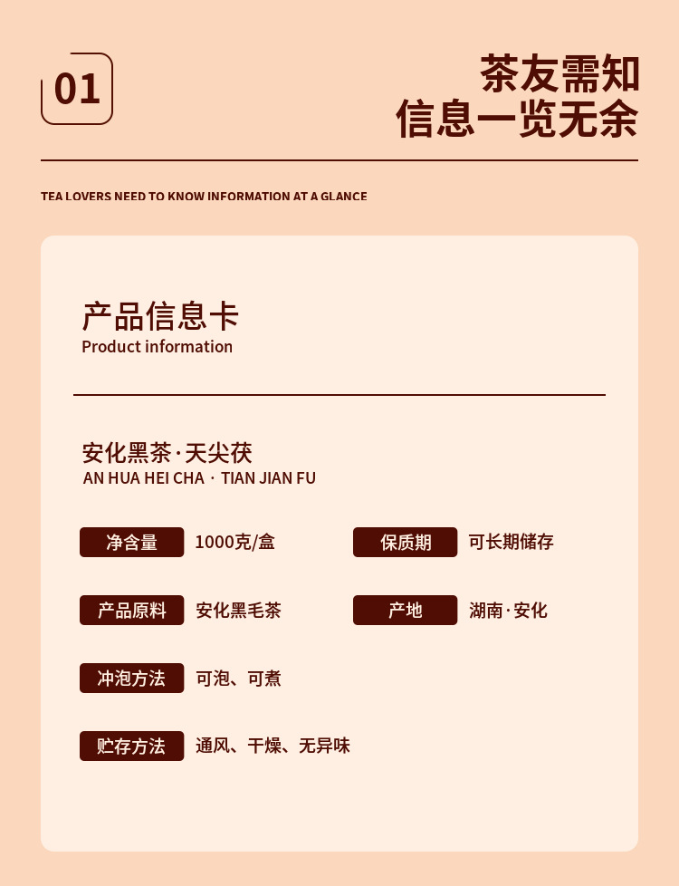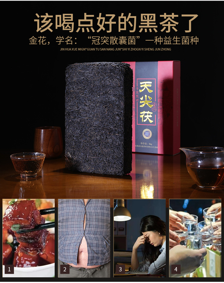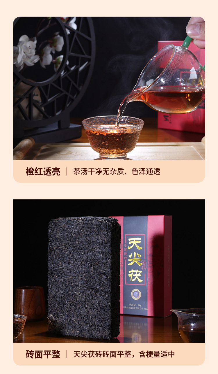 商品名称:上游热销安化黑茶天尖茯砖茶2斤装黑金茶金花系列盒装安化金花