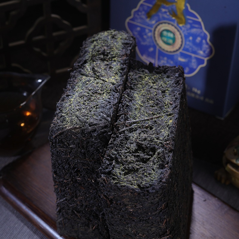 荷香黑茶安化批发湖南金花茯砖茶手筑茯砖原叶陈年茶醇香