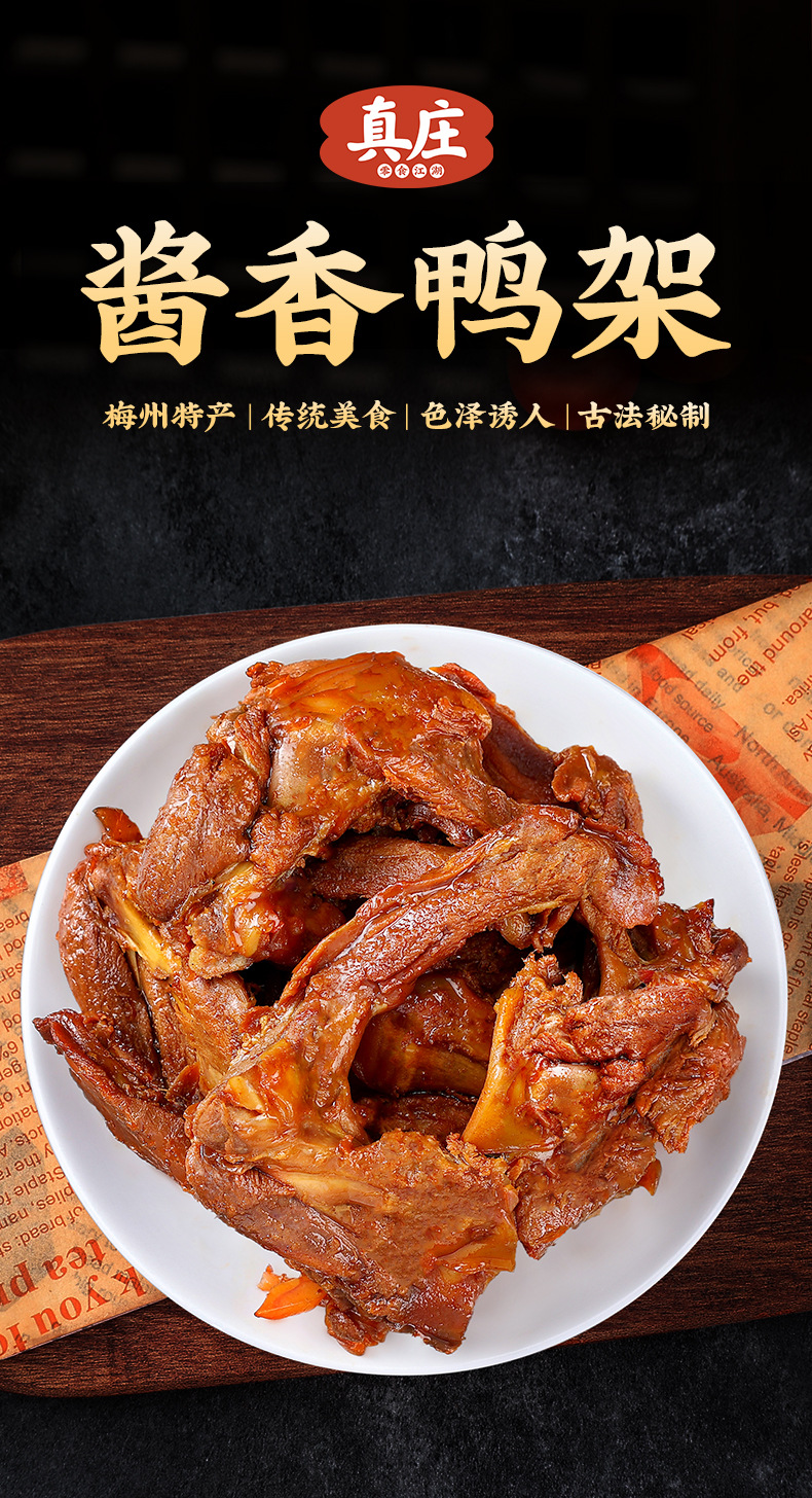 广东梅州真庄开袋即食卤鸭架熟食客家特产酱香鸭架下酒菜麻辣零食