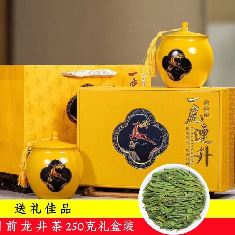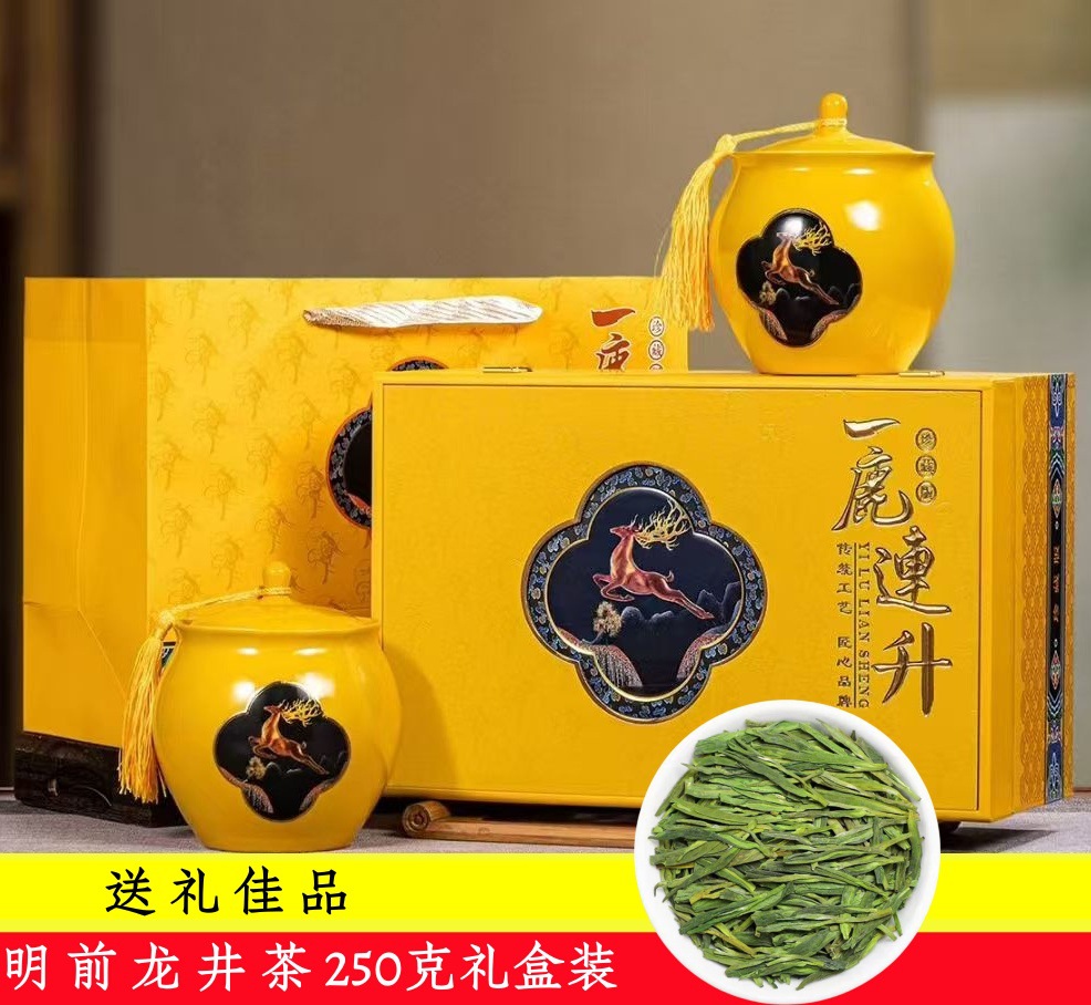 龙井茶新茶明前绿茶茶叶高档陶瓷罐礼品过节送礼盒装250g商务