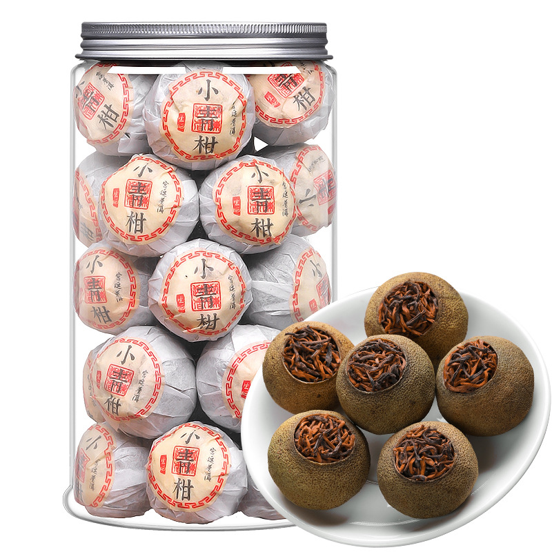 商品名称:新会小青柑茶叶陈皮云南普洱茶熟茶茶叶生晒小柑橘柑普茶罐装批发