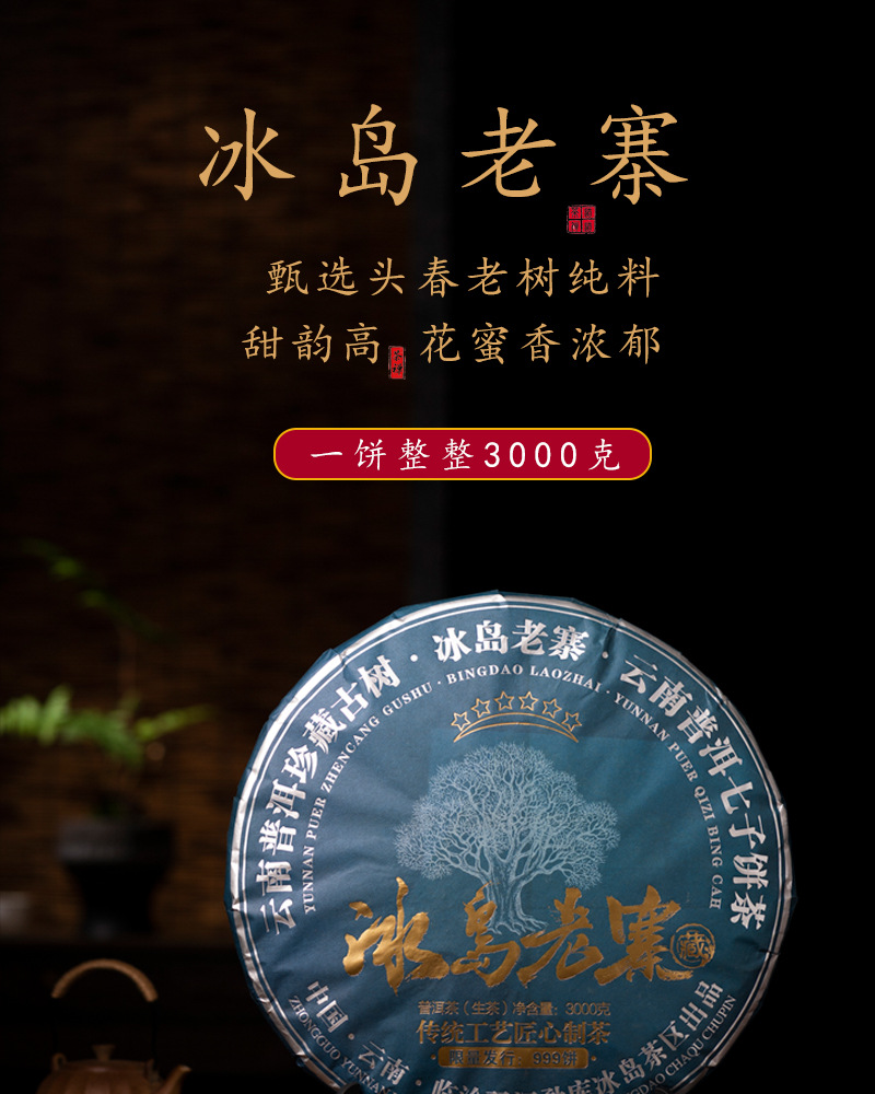 商品名称:冰岛老寨3000g普洱茶生茶大饼