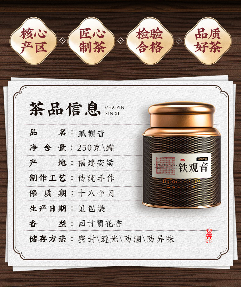 商品名称:黑曜系列安溪乌龙茶铁观音茶叶250g配礼袋铁盒装浓香礼品
