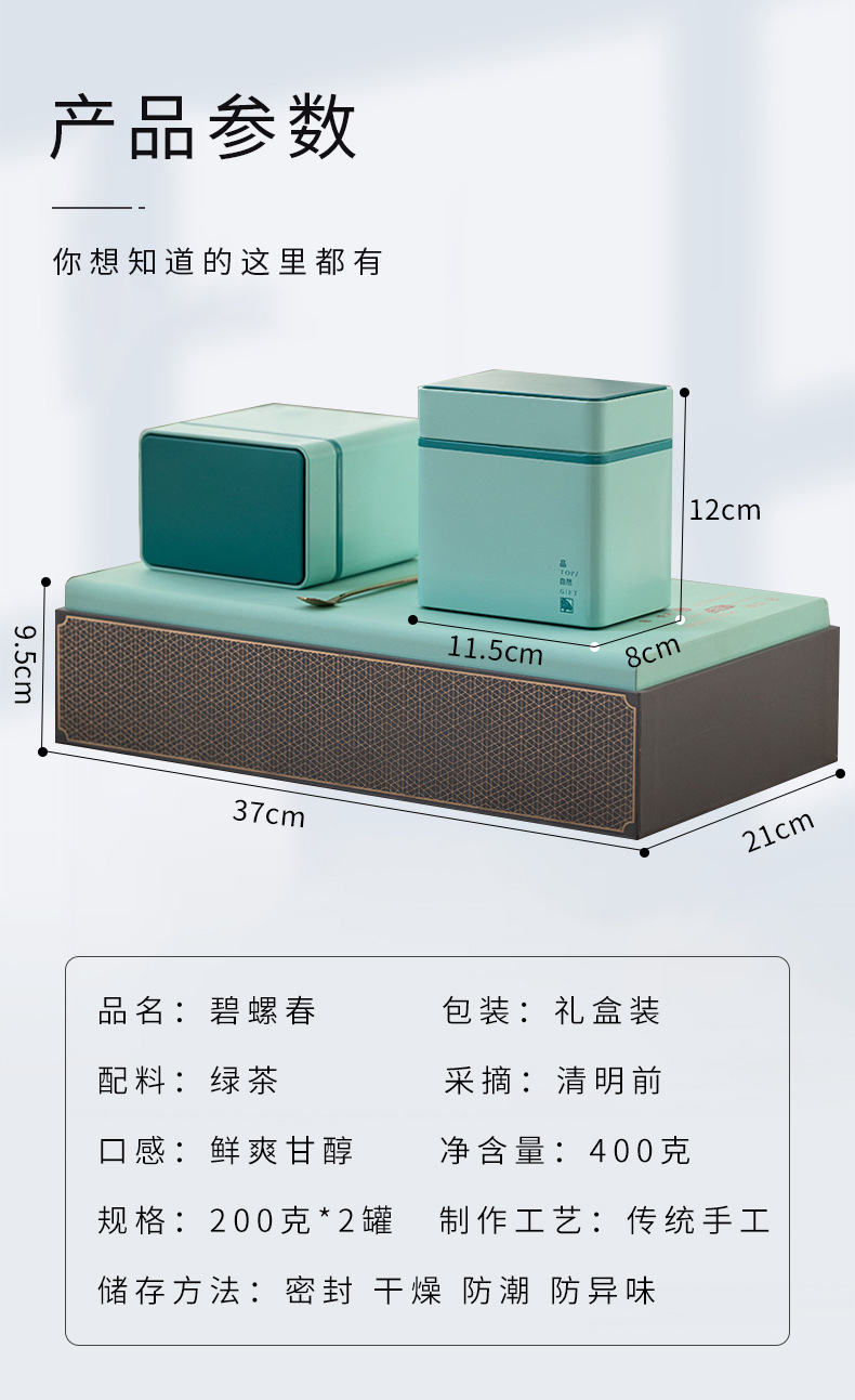 商品名称:新茶碧螺春茶叶礼盒装茶叶高级绿茶400g礼盒装