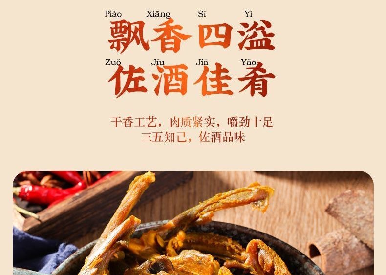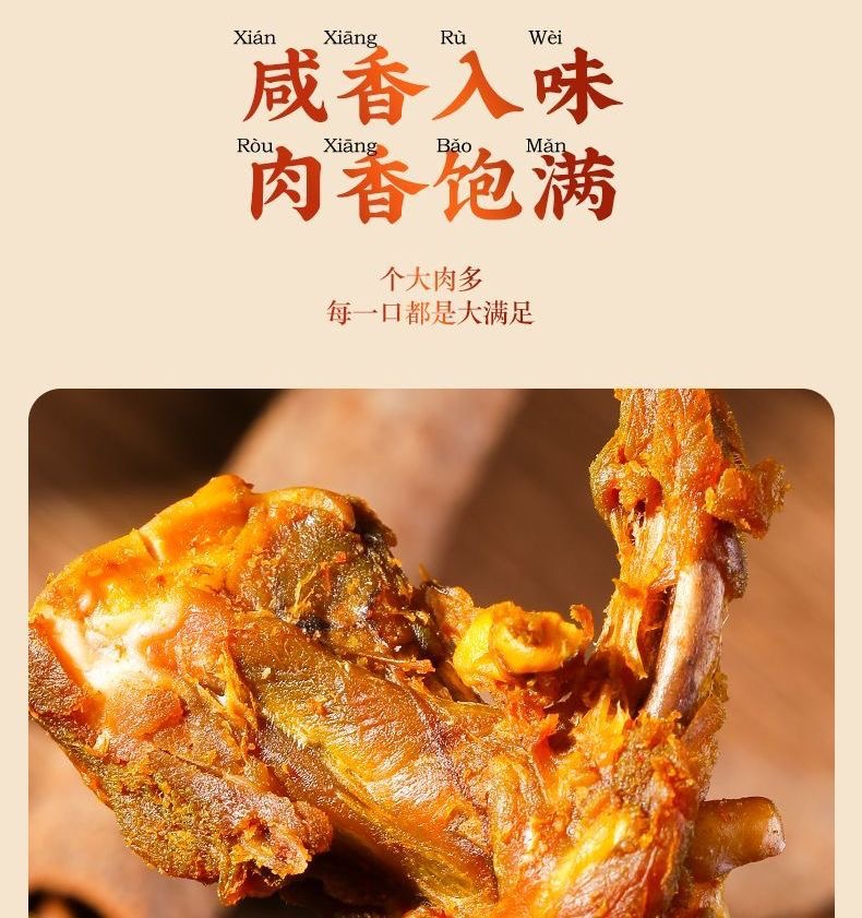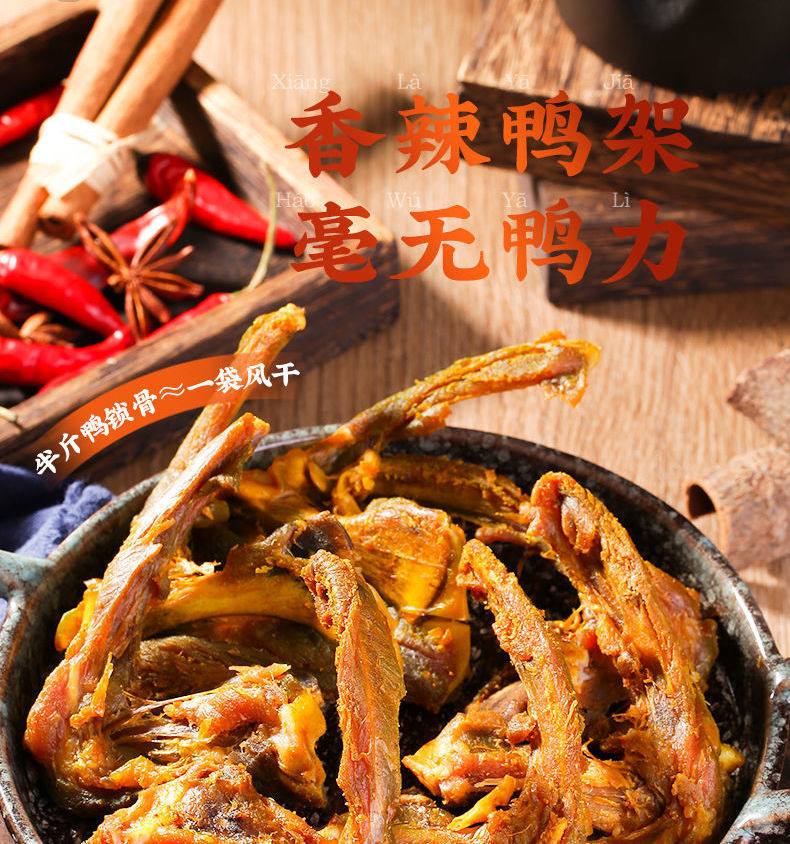 商品名称:烤制盐焗干香鸭架锁骨耐嚼香辣酱鸭锁骨嘿鸭味烤脖办公室休闲零食