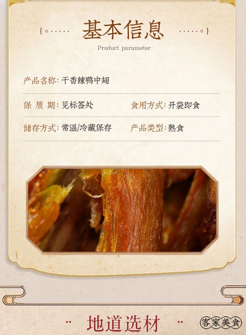 商品名称:焗微辣鸭中翅烤风干翅膀即食鸭肉熟食广东客家梅州零食非香辣鸡翅