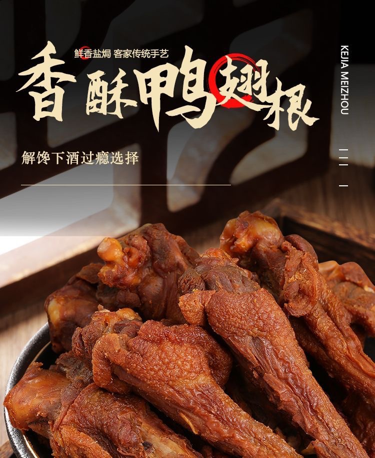 商品名称:风干盐焗味香辣烤鸭翅根翅膀追剧馋嘴熟食特产开袋即食美味零食