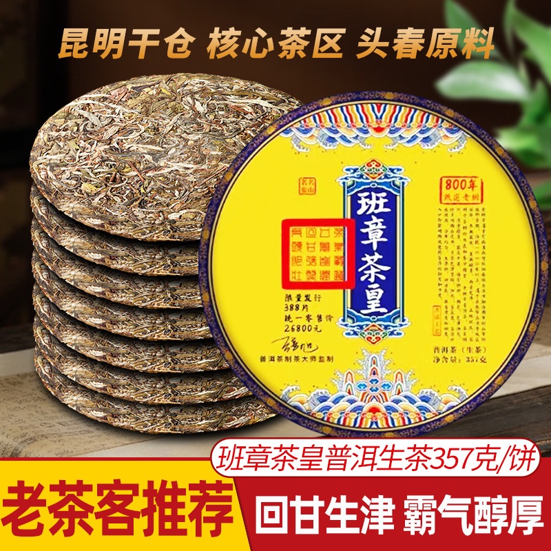 商品名称:口粮茶云南普洱生茶批发厂家直发班章茶皇大叶种晒青茶饼普洱茶饼