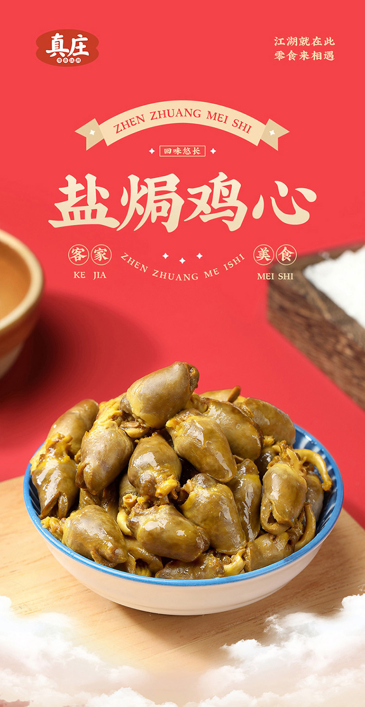 商品名称:真庄梅州客家特产盐焗鸡心KTV聚会小零食开袋即食卤味鸡肉下酒菜
