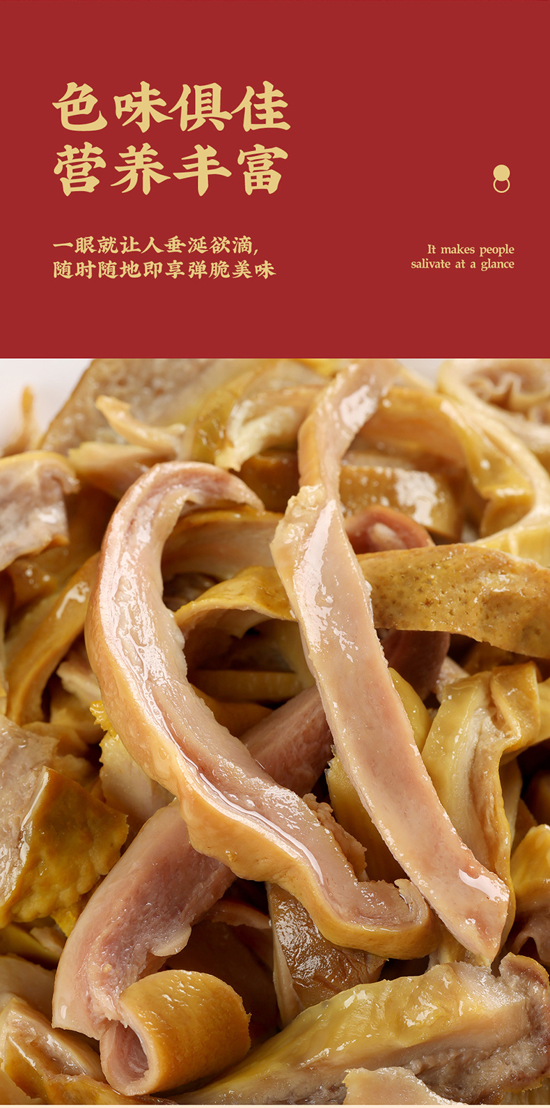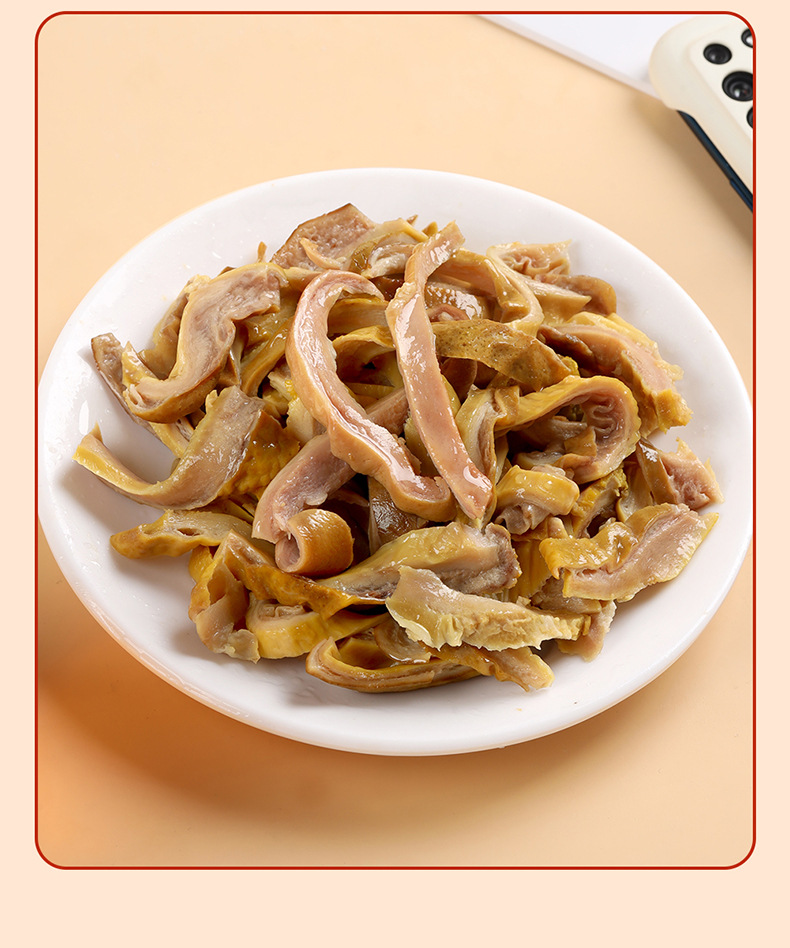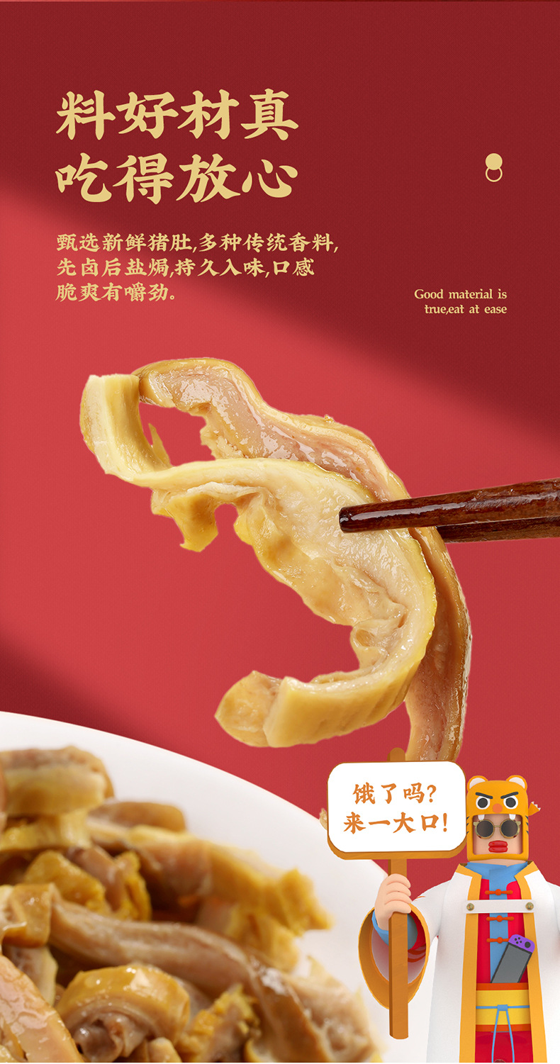 原料和配料 :猪肚、饮用水、食用盐、味精、酱油、糖、食用香辛料、食品添加剂(脱氢乙酸钠、D-异抗坏血酸钠、山梨酸钾