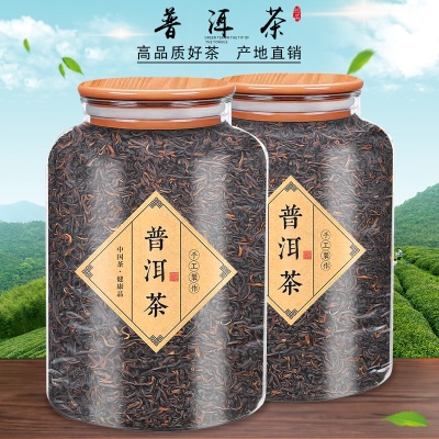 云南普洱茶熟茶散茶渤海宫廷金牙陈年老茶玻璃罐散装500g批发