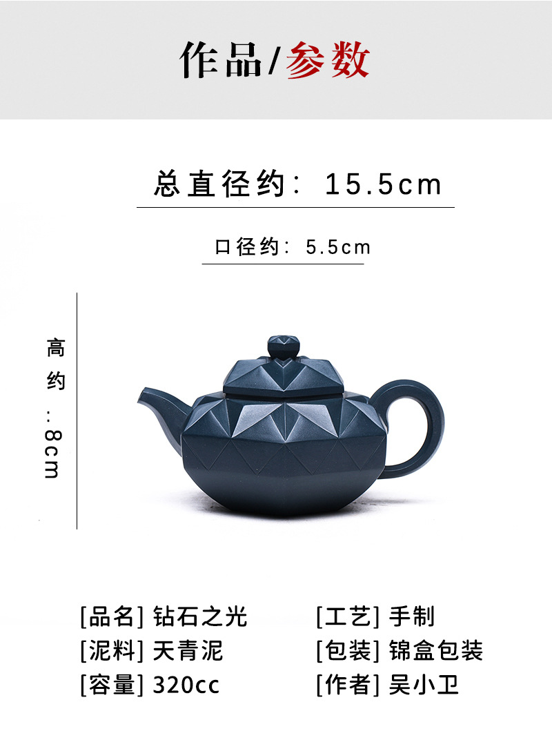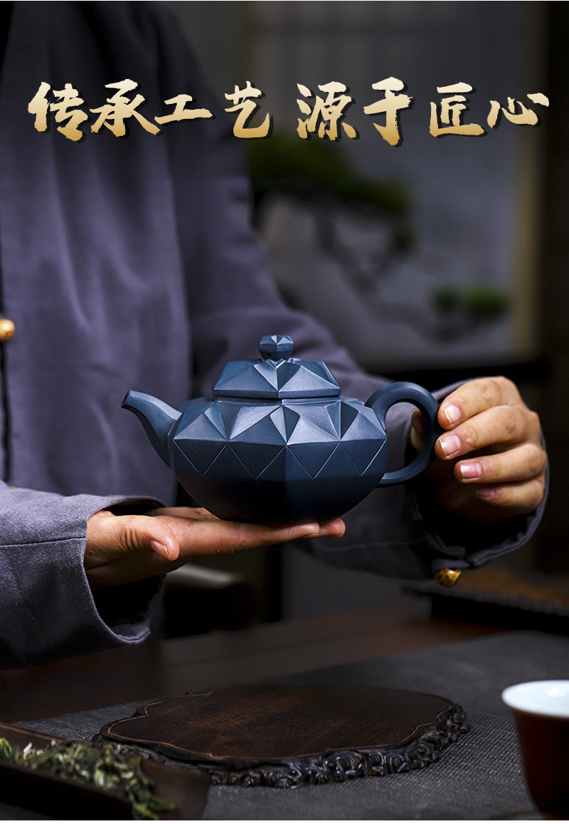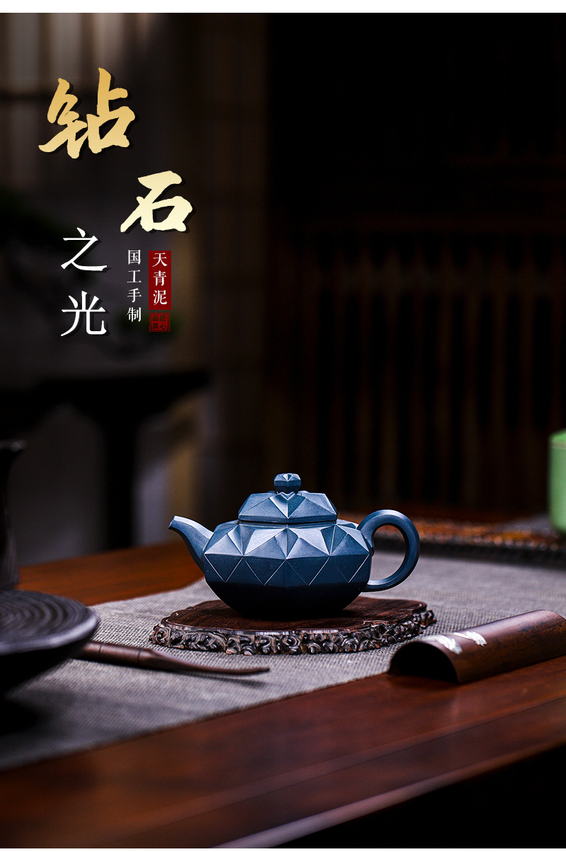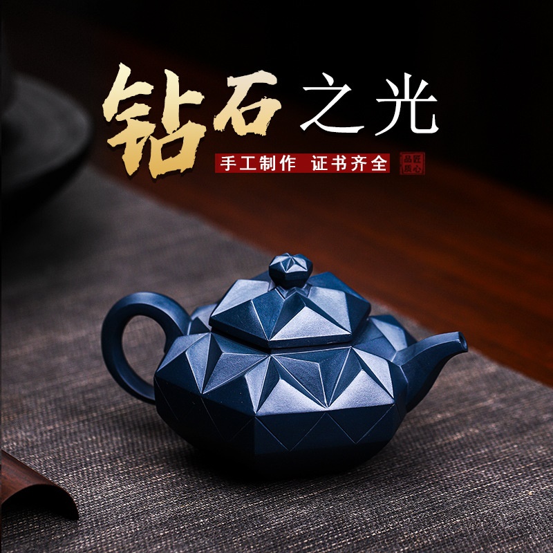 商品名称:宜兴手工紫砂壶家藏天青泥证书齐全易包浆钻石之光出水暴爽