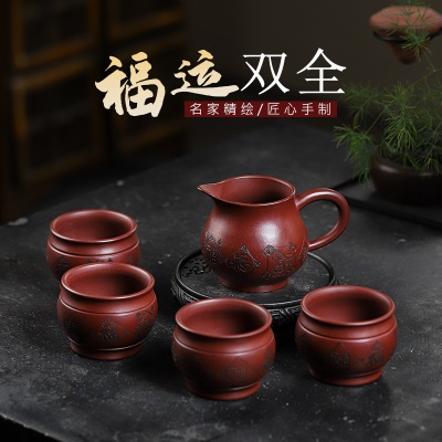 宜兴手工紫砂壶福运双全公道杯主人杯全套家藏龙血砂泡茶壶