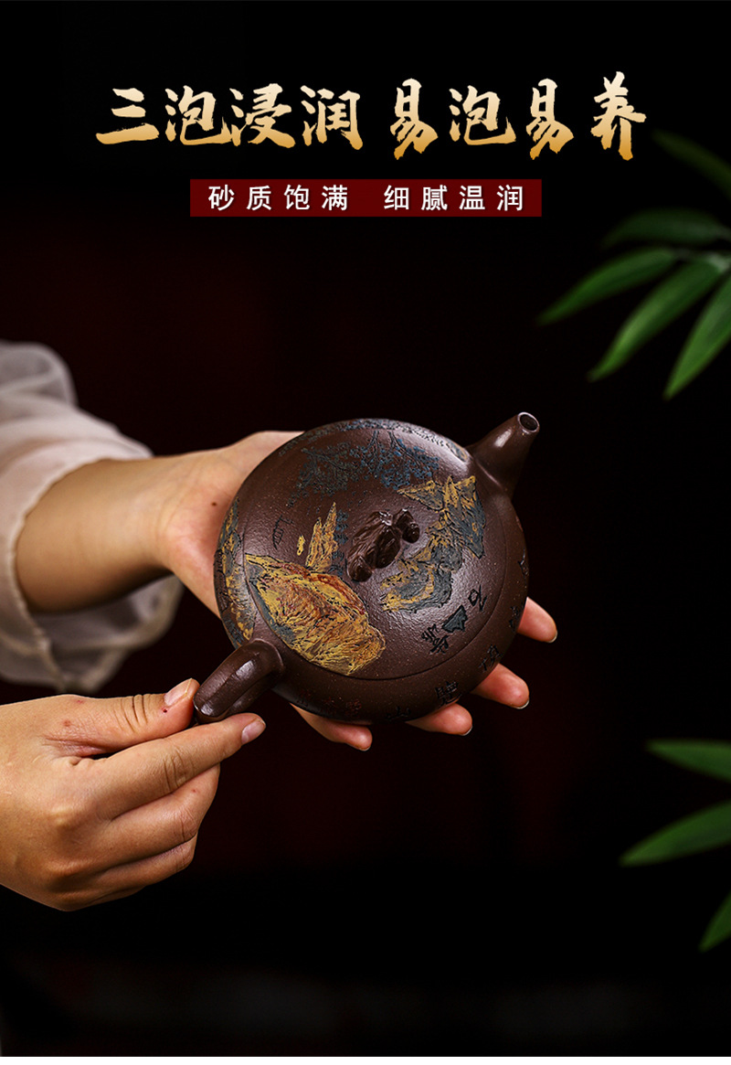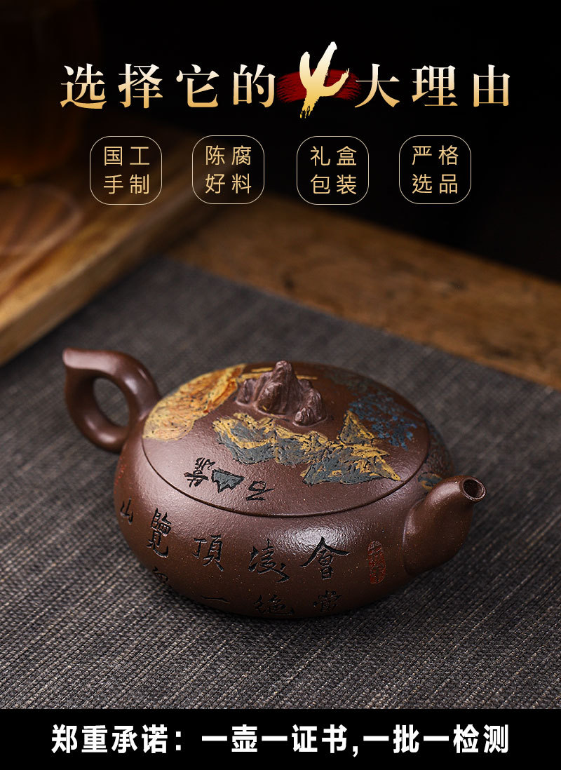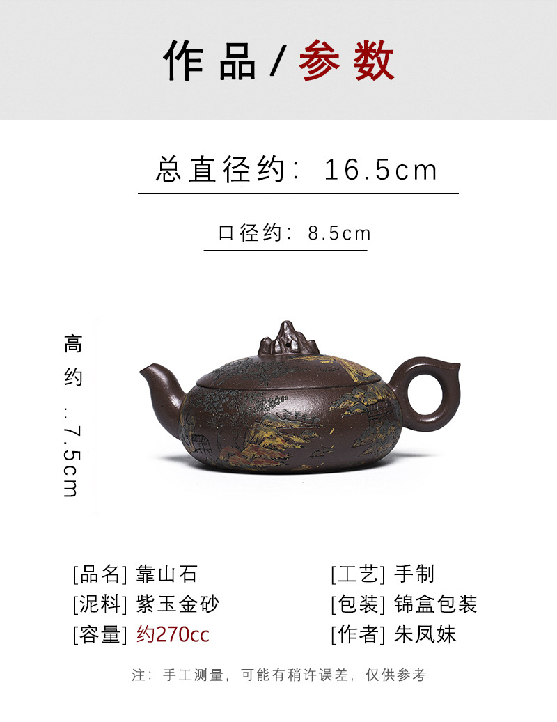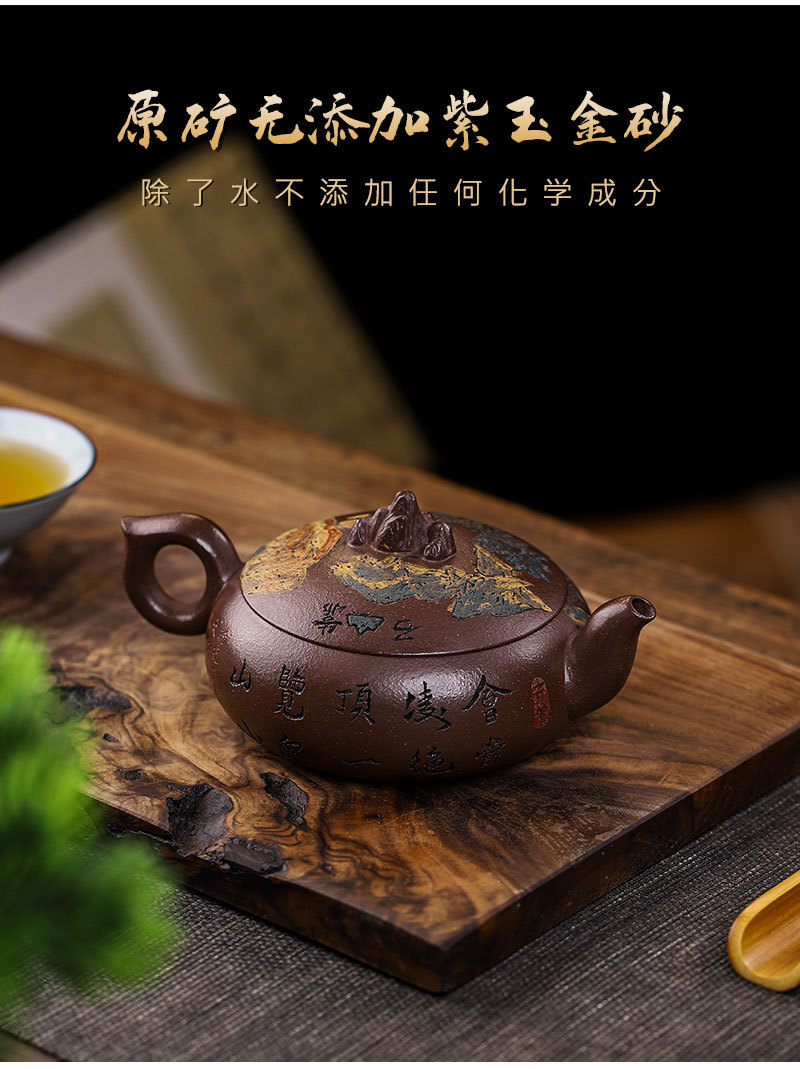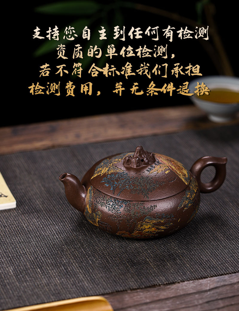 商品名称:宜兴手工紫砂壶家藏紫玉金砂靠山石出水爆爽证书齐全