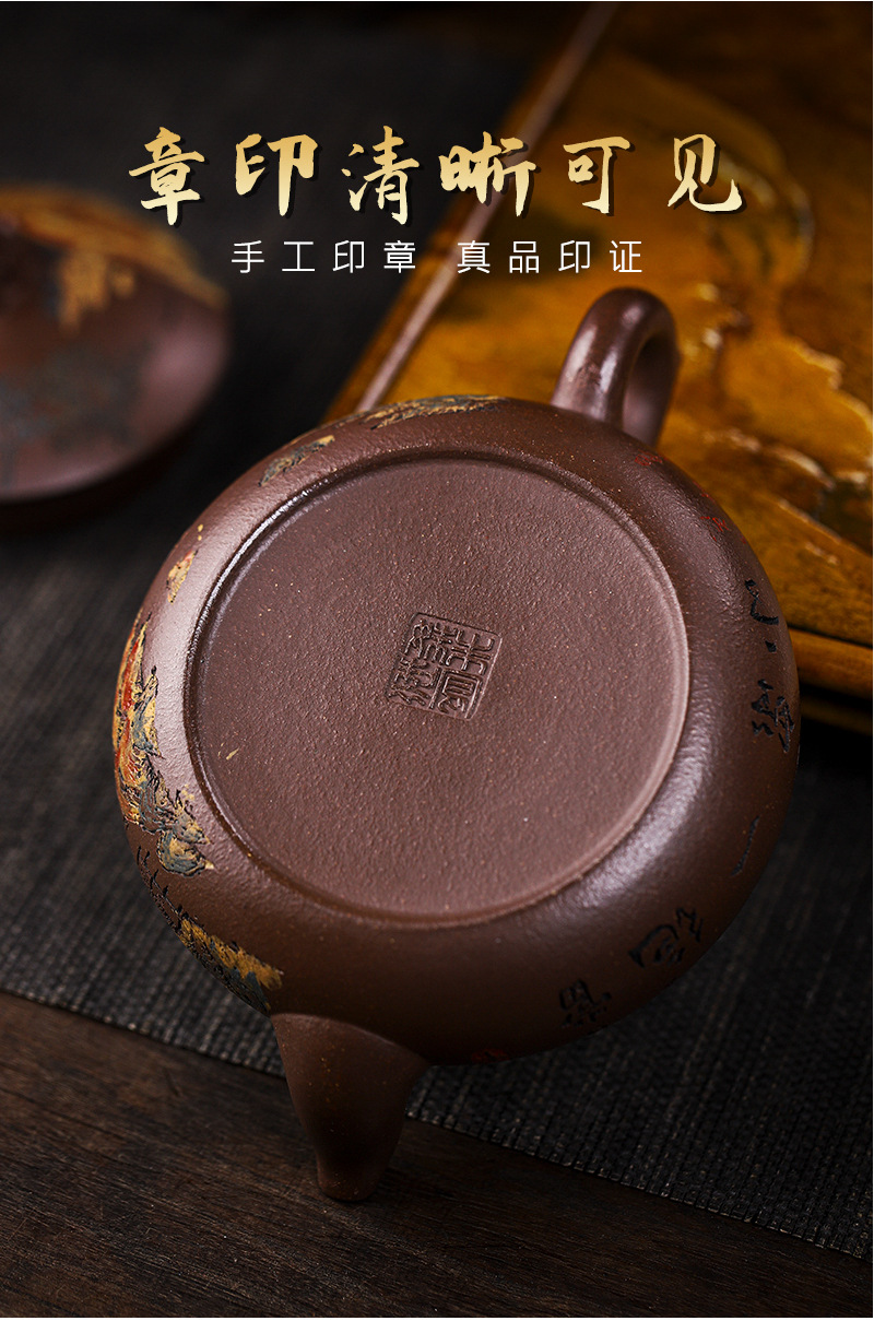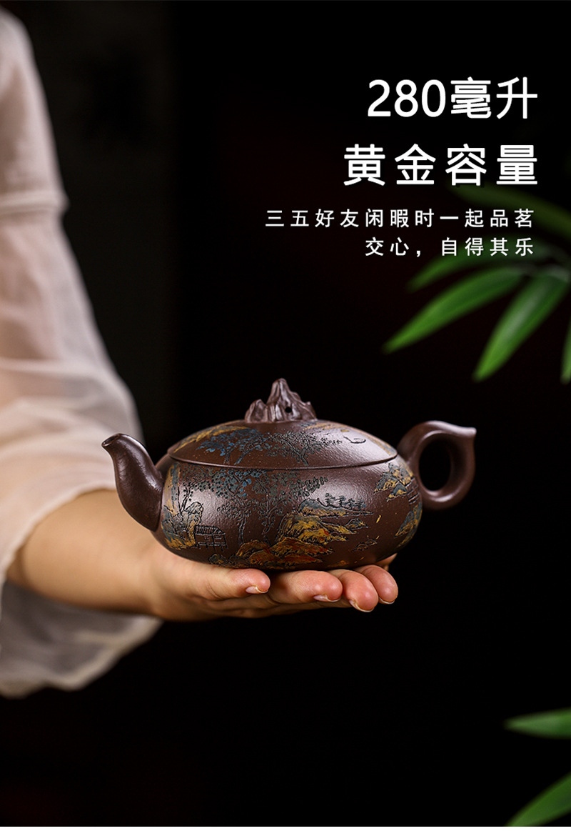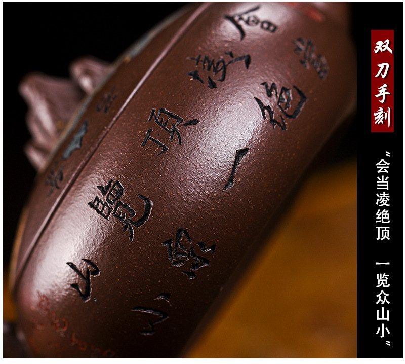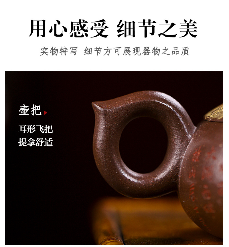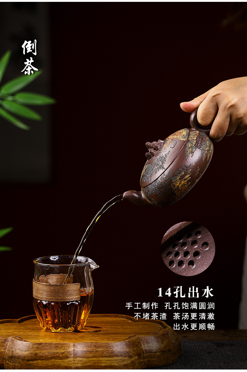 商品名称:宜兴手工紫砂壶家藏紫玉金砂靠山石出水爆爽证书齐全