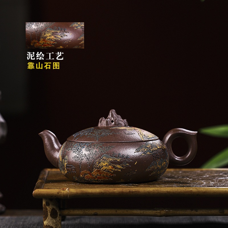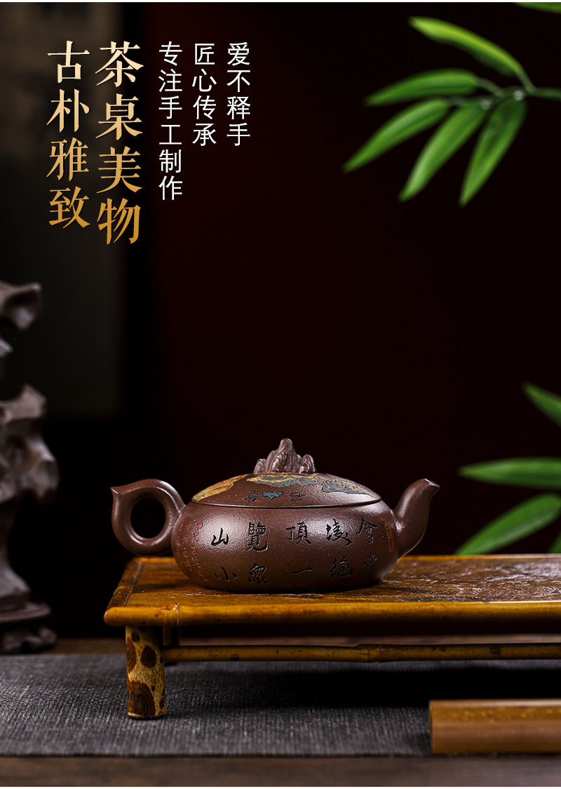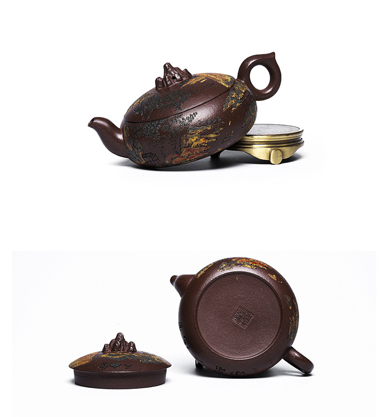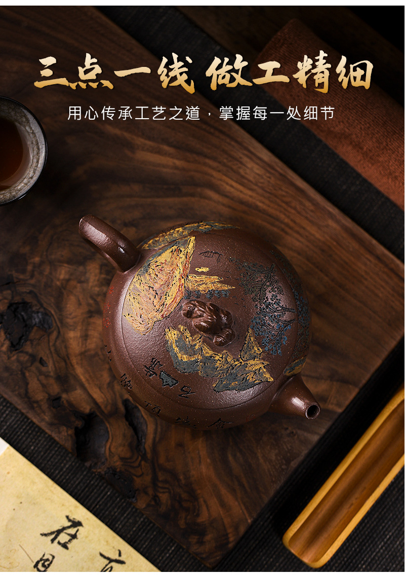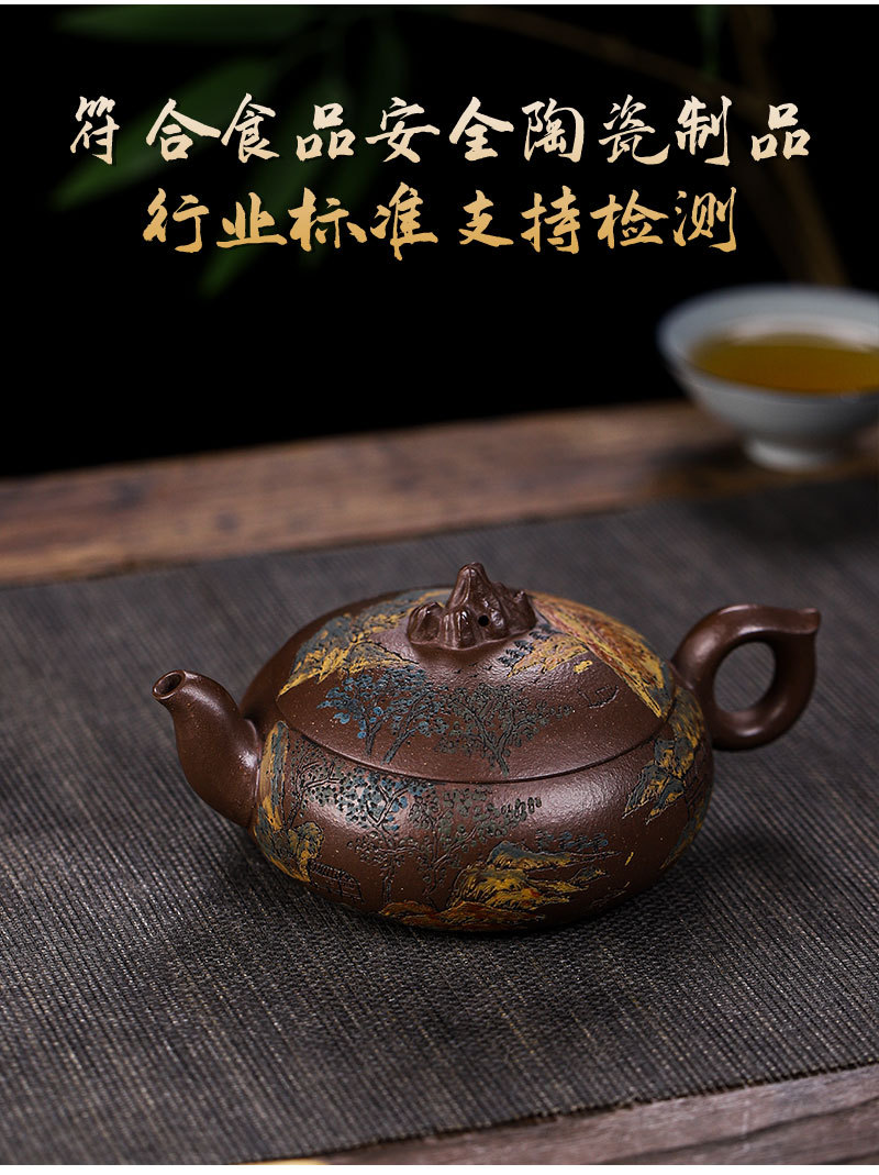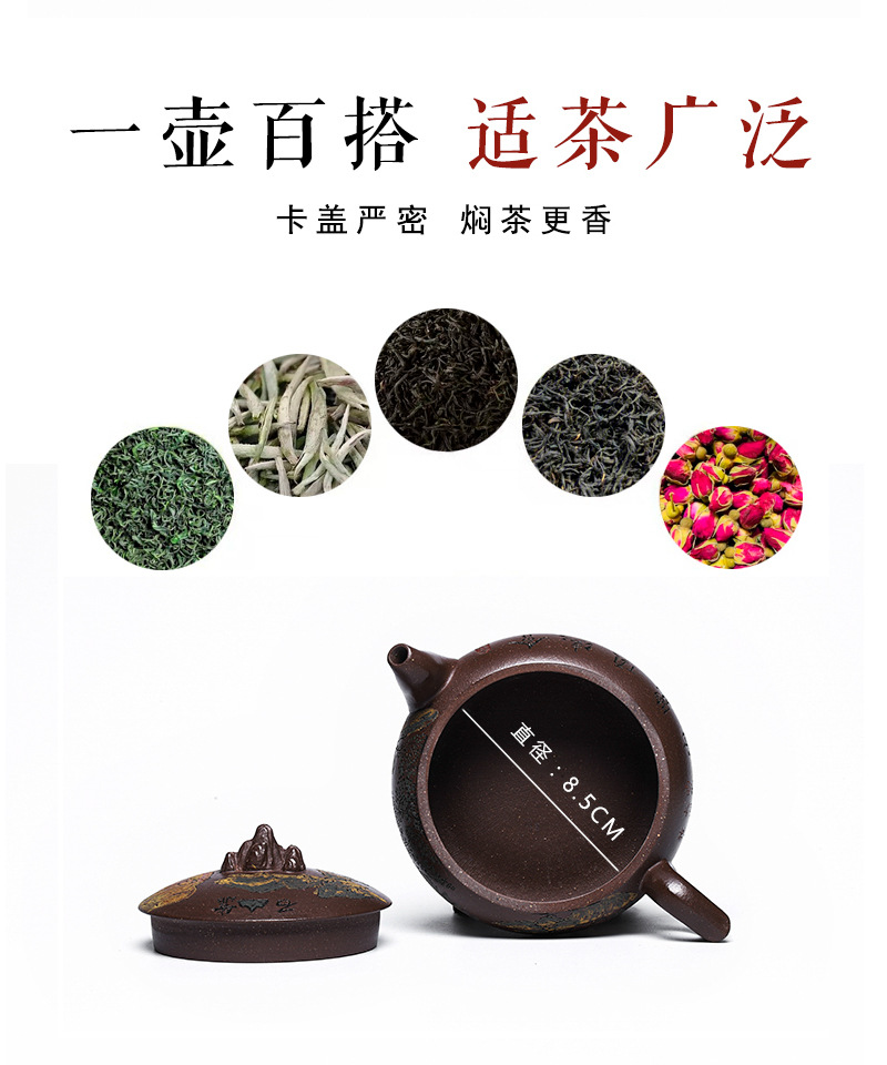 商品名称:宜兴手工紫砂壶家藏紫玉金砂靠山石出水爆爽证书齐全