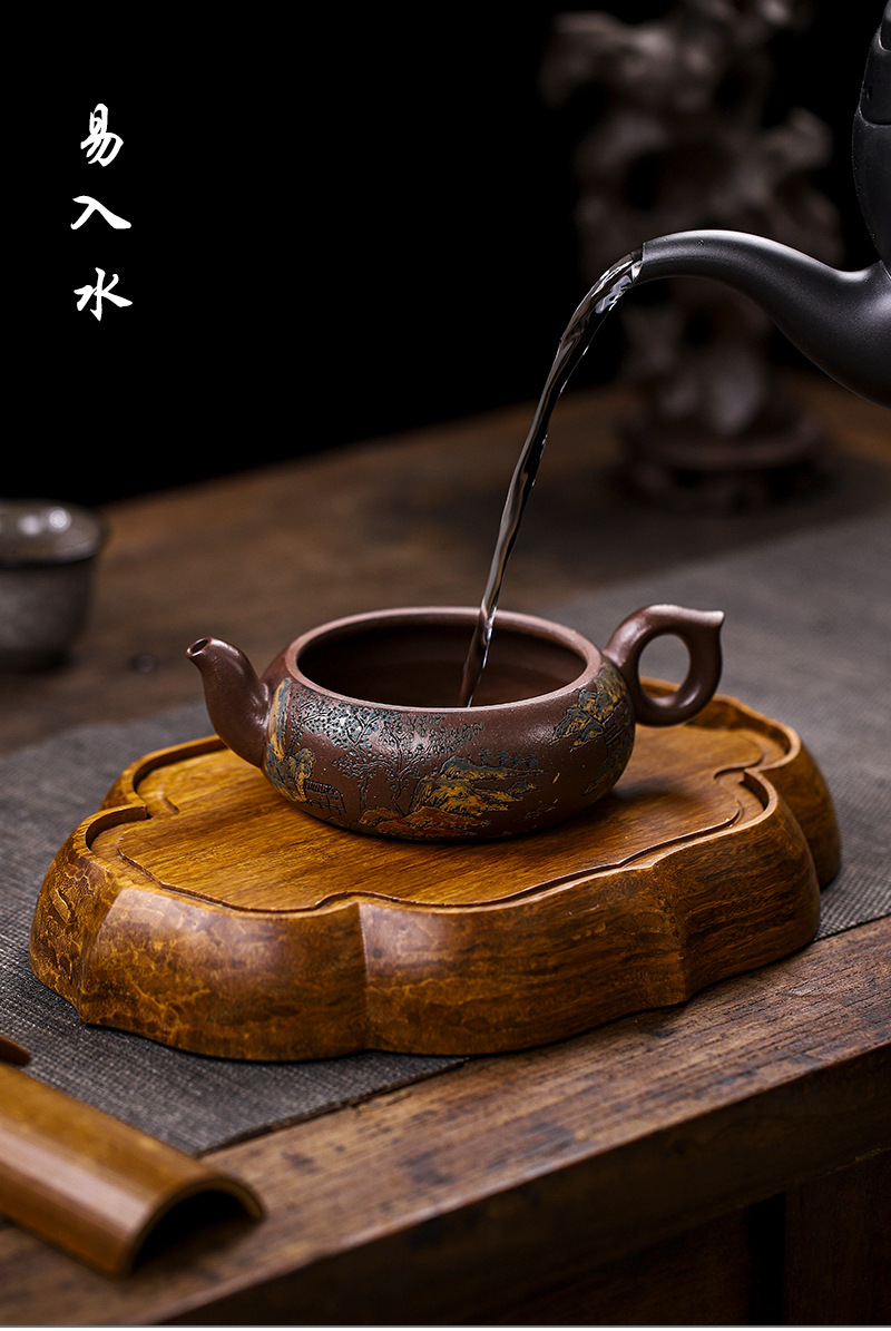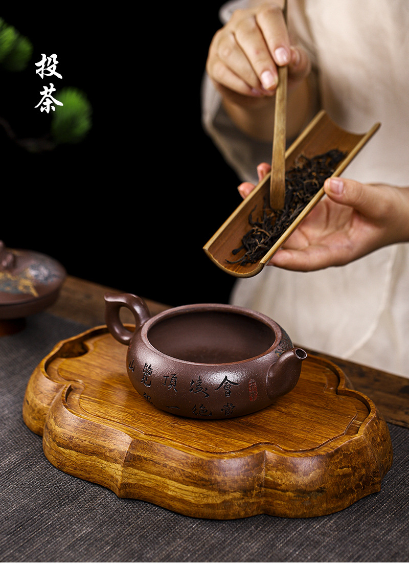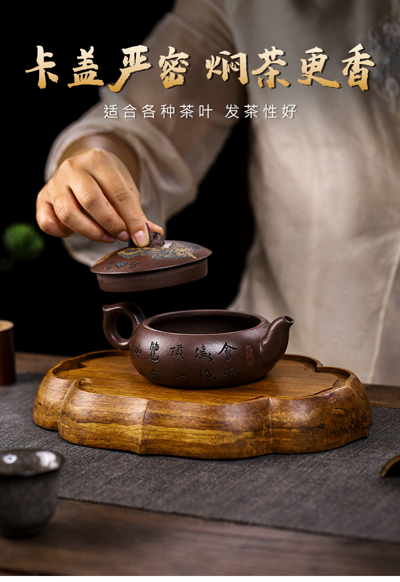 宜兴手工紫砂壶老紫泥飘花周盘茶具泡茶壶礼盒证书齐全