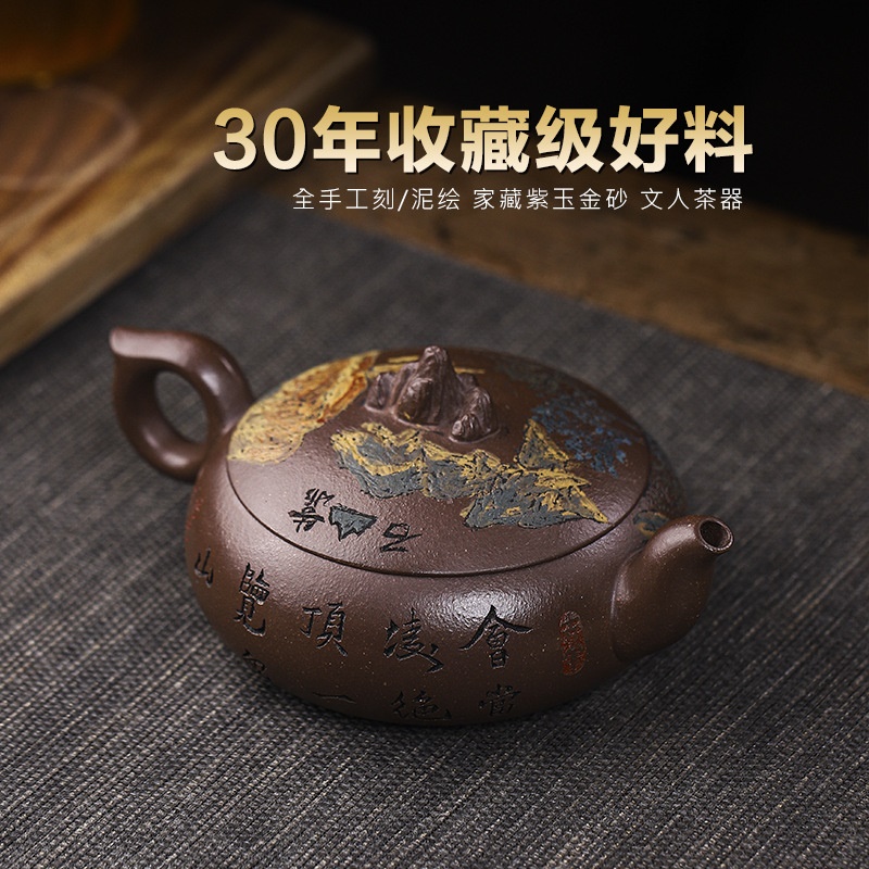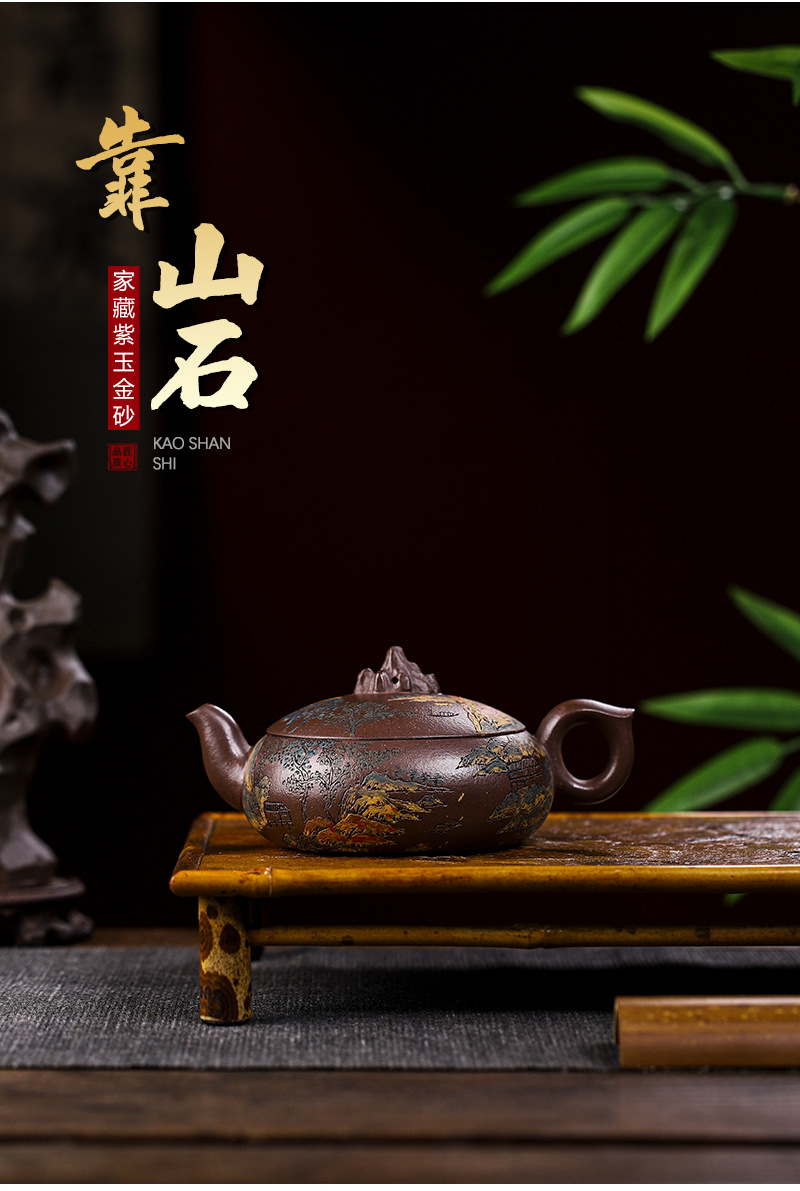 宜兴手工紫砂壶家藏紫玉金砂靠山石出水爆爽证书齐全