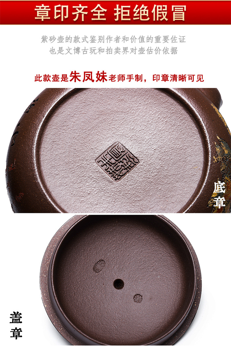 宜兴手工紫砂壶证书全家藏百目紫泥吉祥鸟易包浆出水暴爽滴水不漏