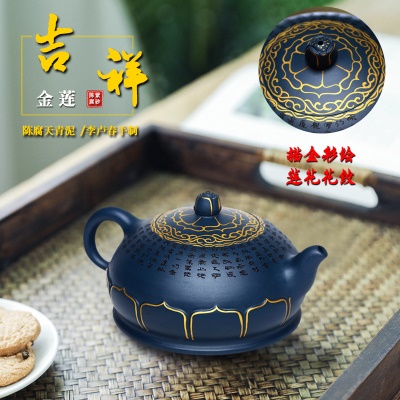 商品名称:宜兴手工紫砂壶证书全陈腐天青泥吉祥金莲易包浆出水暴爽滴水不漏