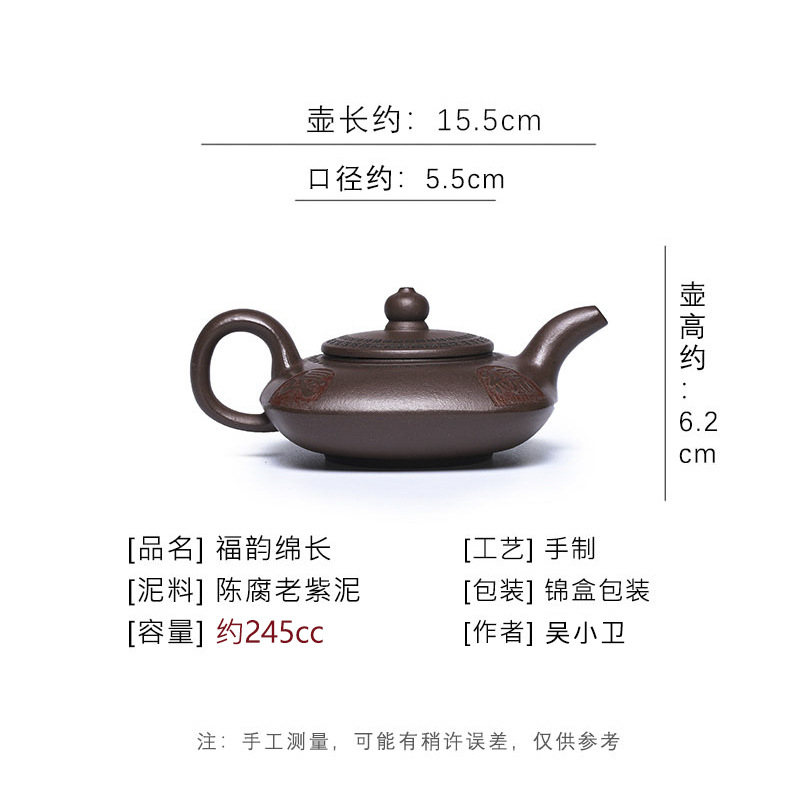 商品名称:宜兴手工紫砂壶陈腐老紫泥福韵绵长泡茶茶壶功夫茶具家用