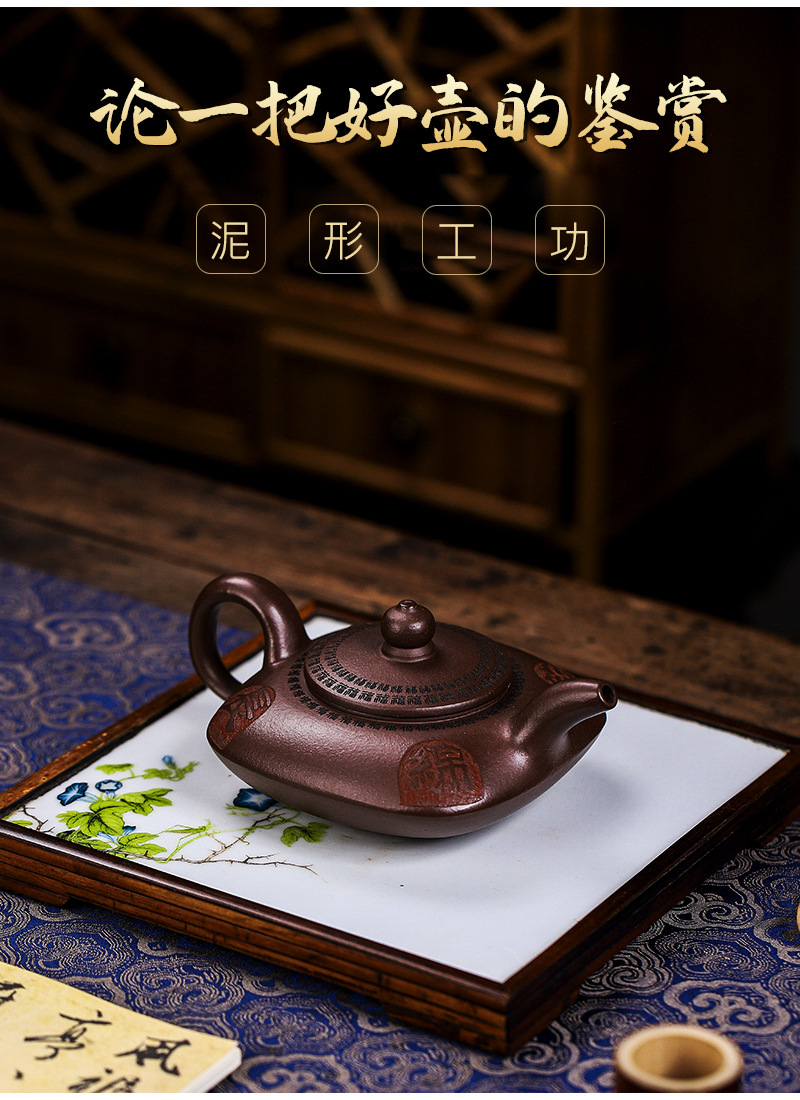 宜兴手工紫砂壶段泥柴烧吗明式四方证书齐全国工手制家用茶壶