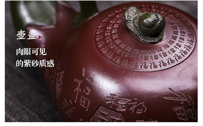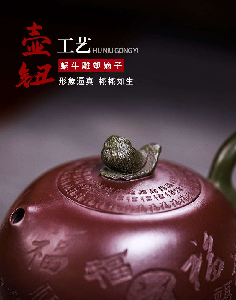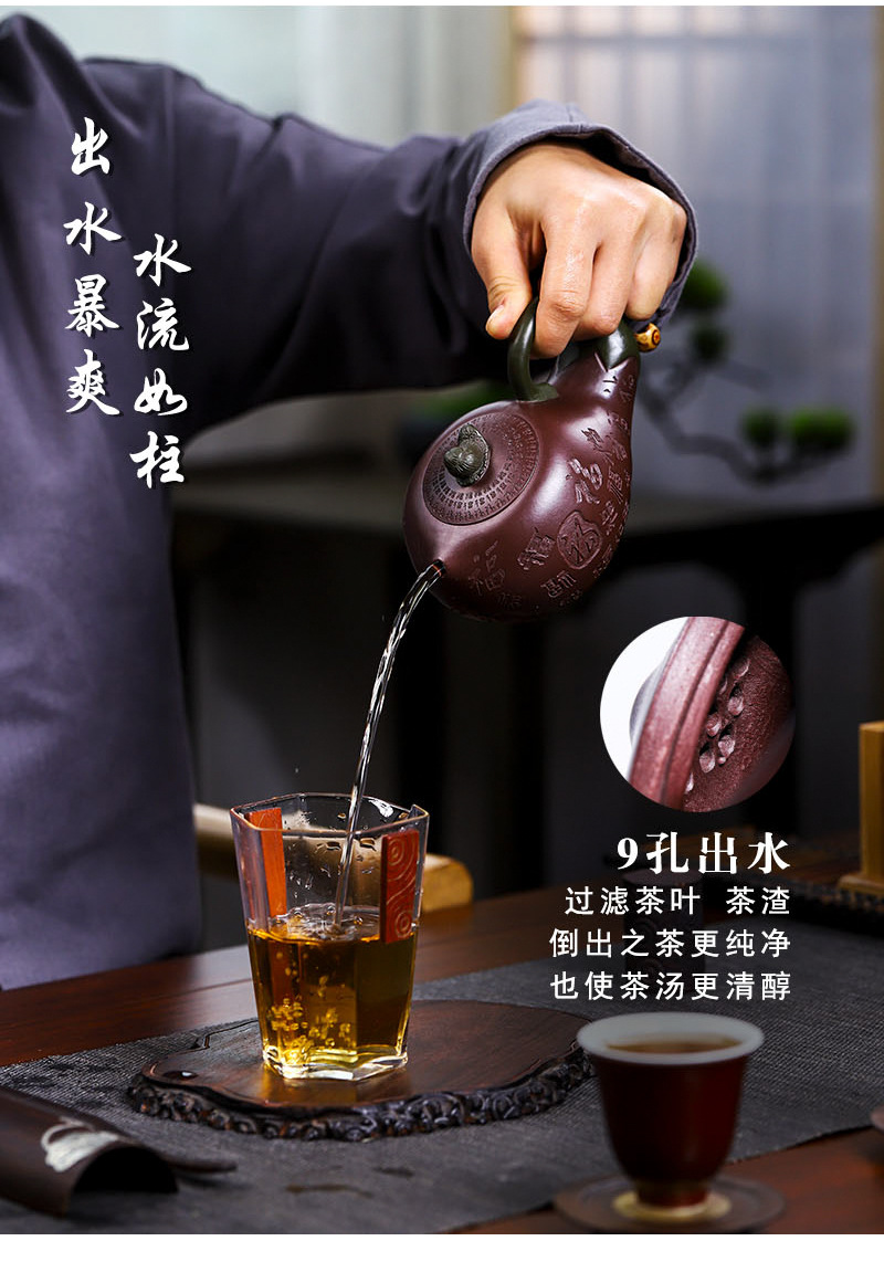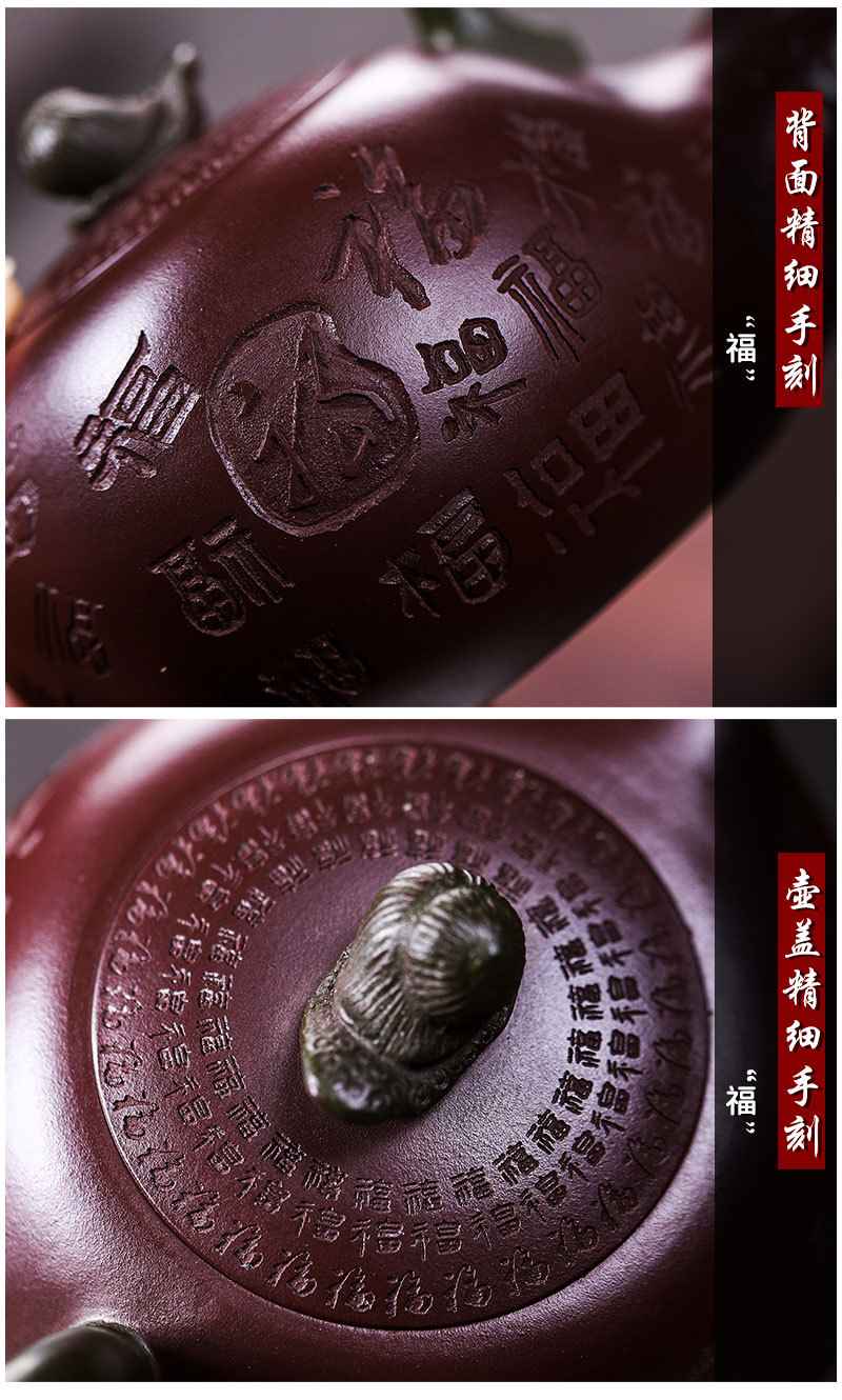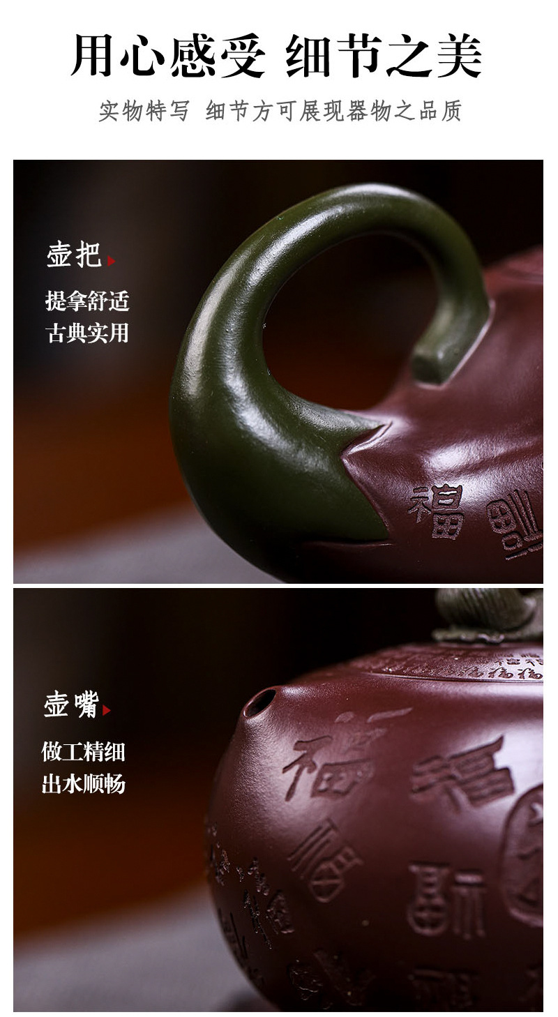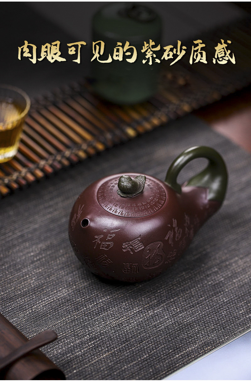 商品名称:宜兴手工紫砂壶证书全家藏紫茄泥茄韵百福易包浆出水暴爽滴水不漏