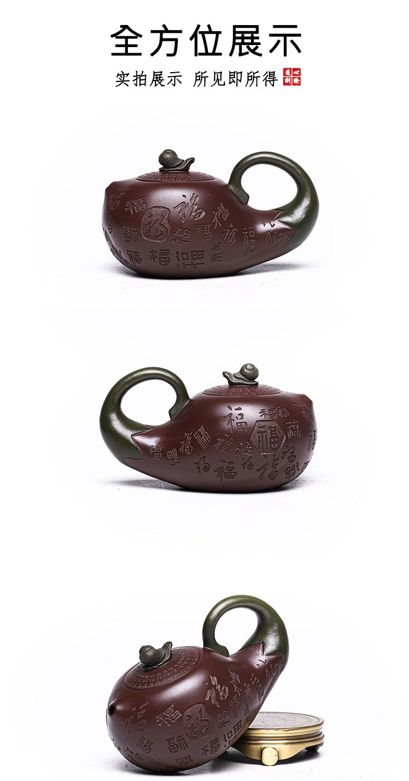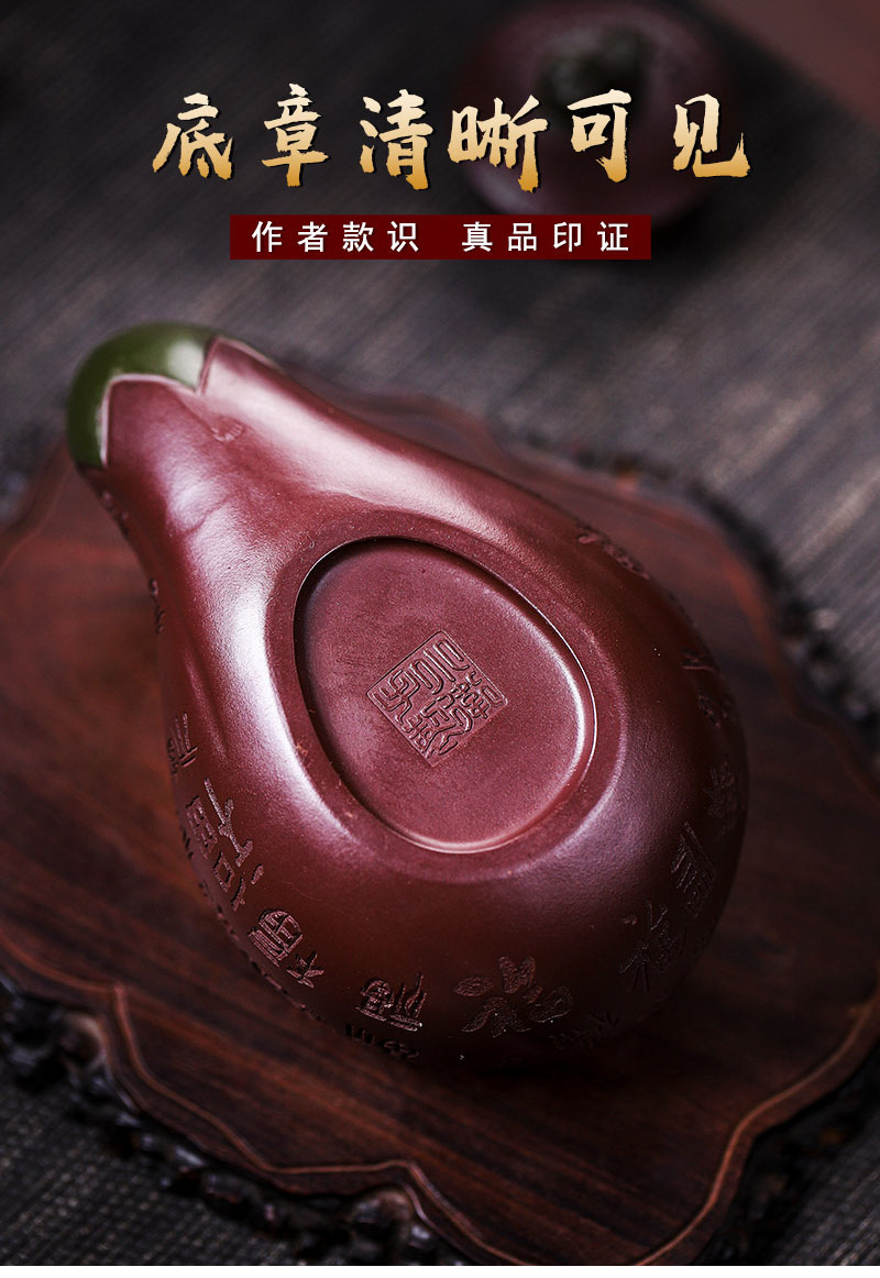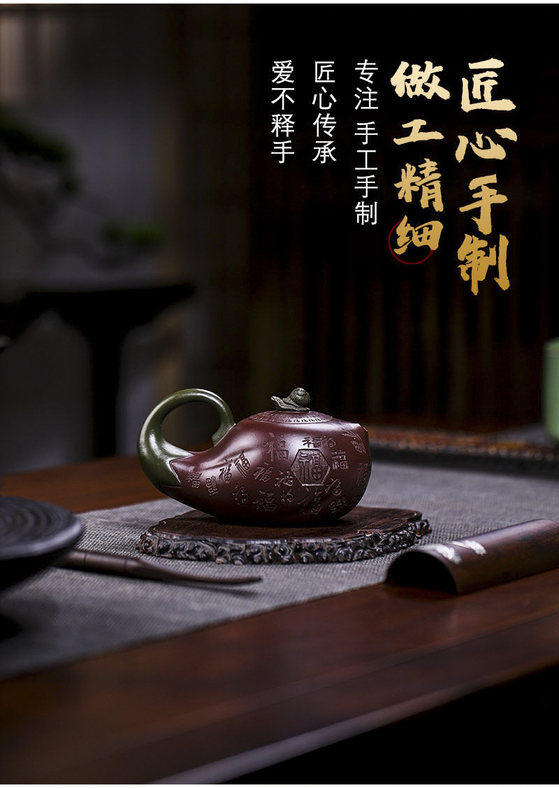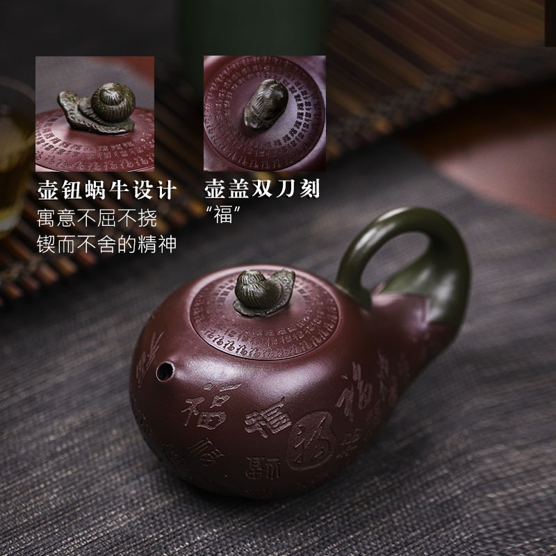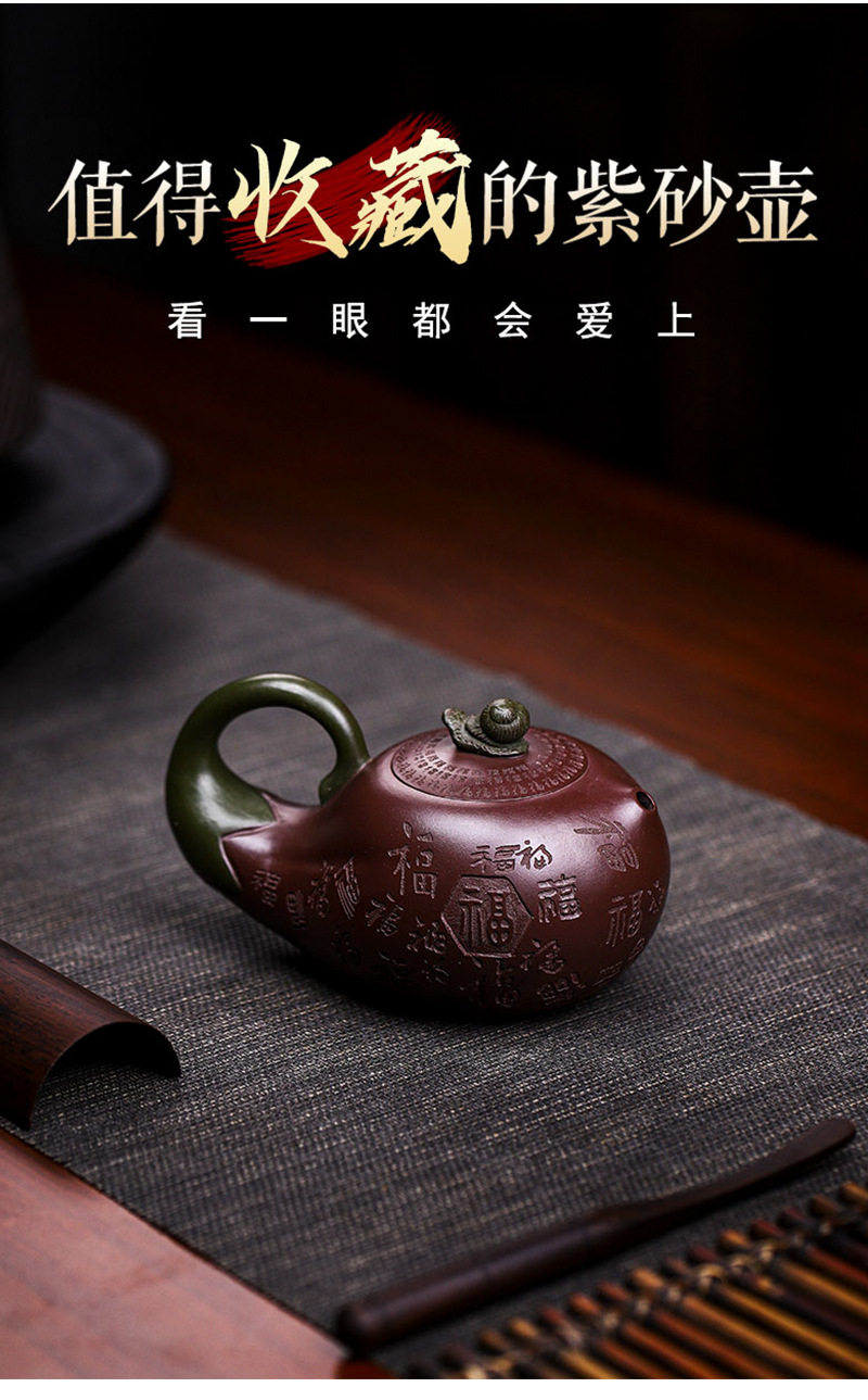 商品名称:宜兴手工紫砂壶证书全家藏紫茄泥茄韵百福易包浆出水暴爽滴水不漏