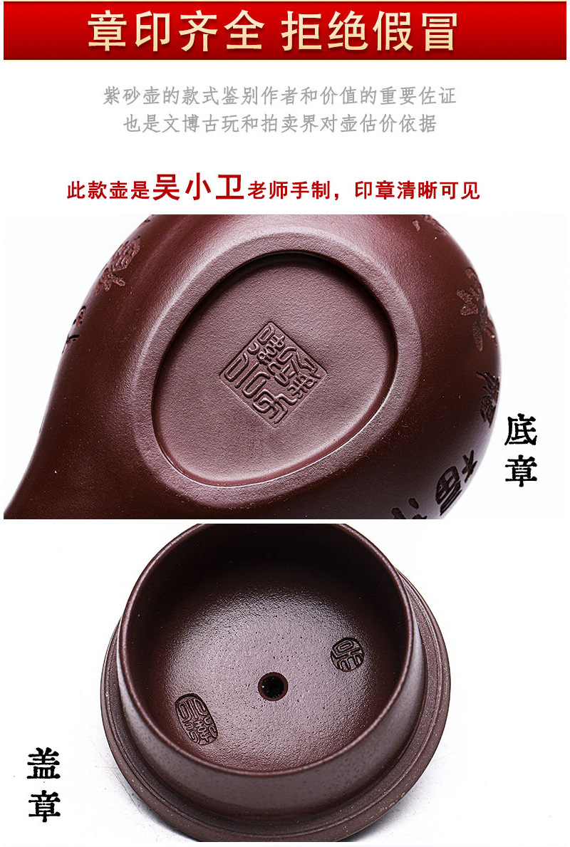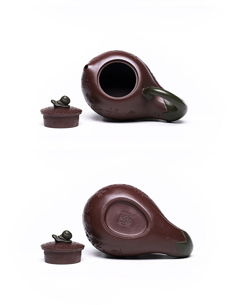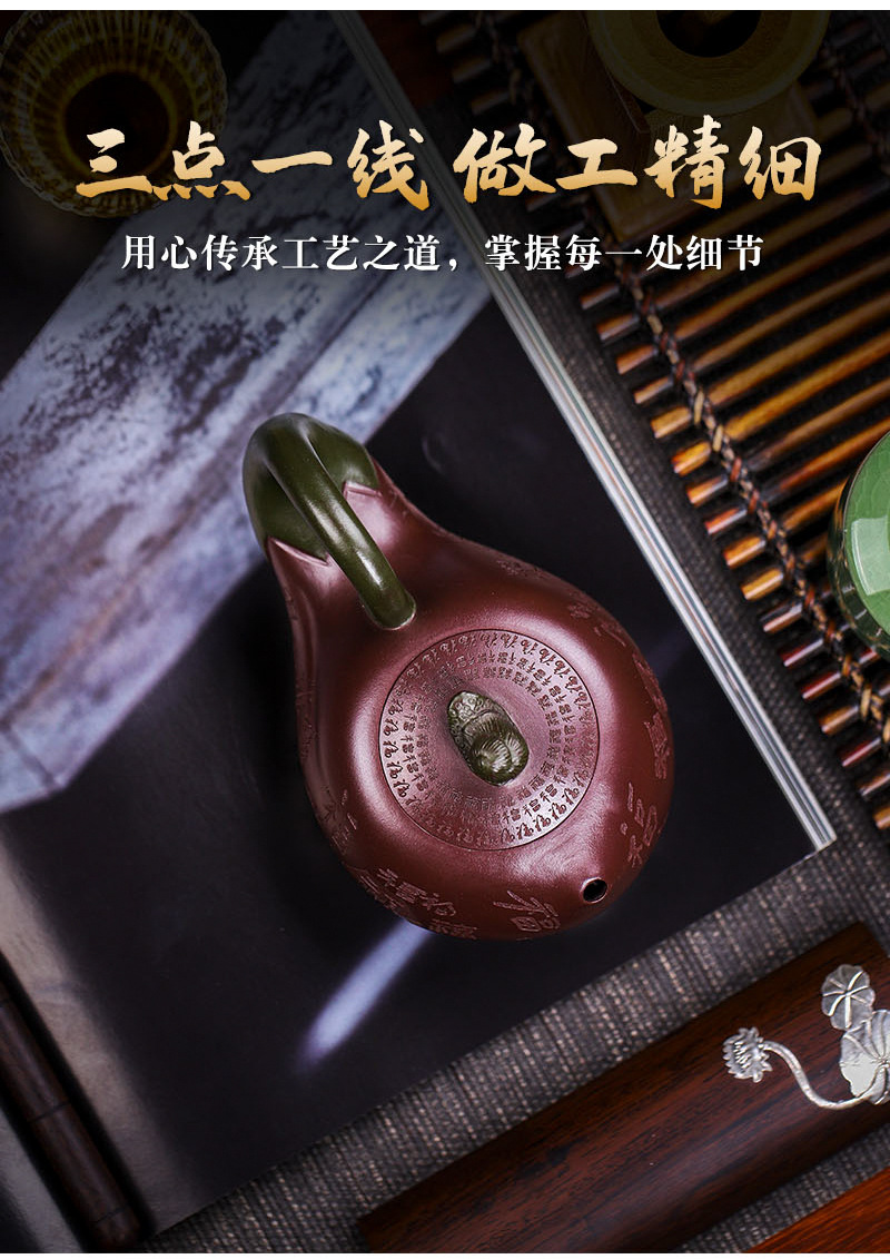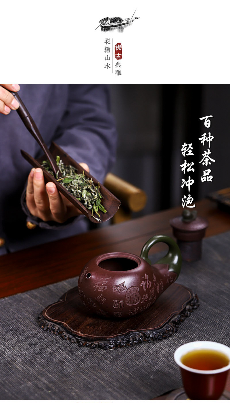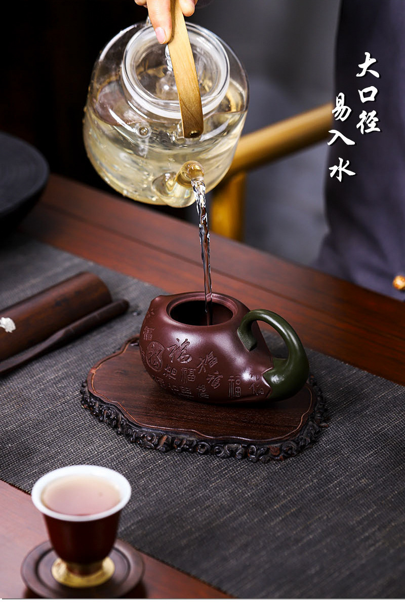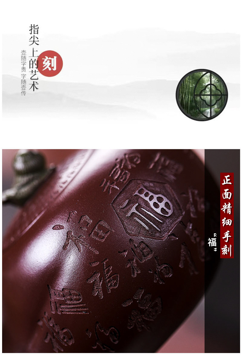 商品名称:宜兴手工紫砂壶证书全家藏紫茄泥茄韵百福易包浆出水暴爽滴水不漏
