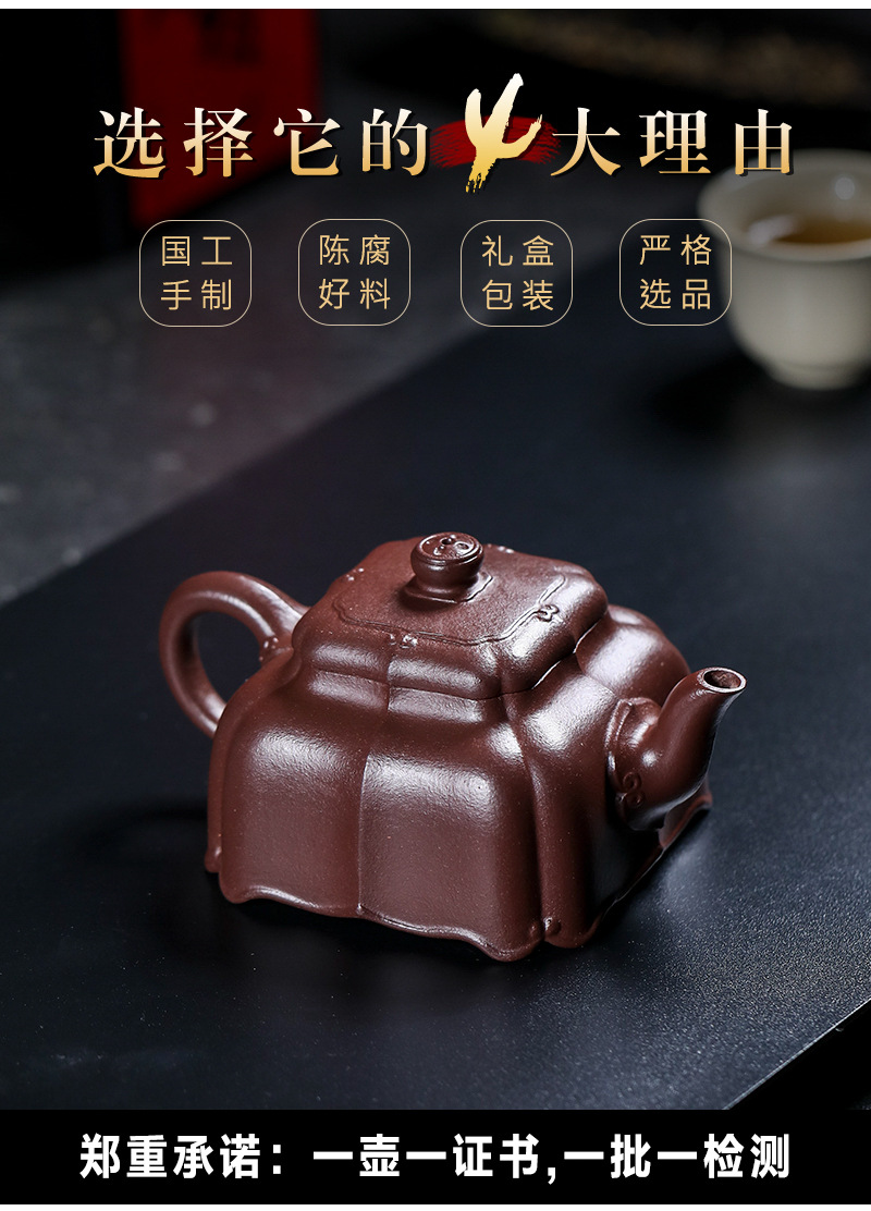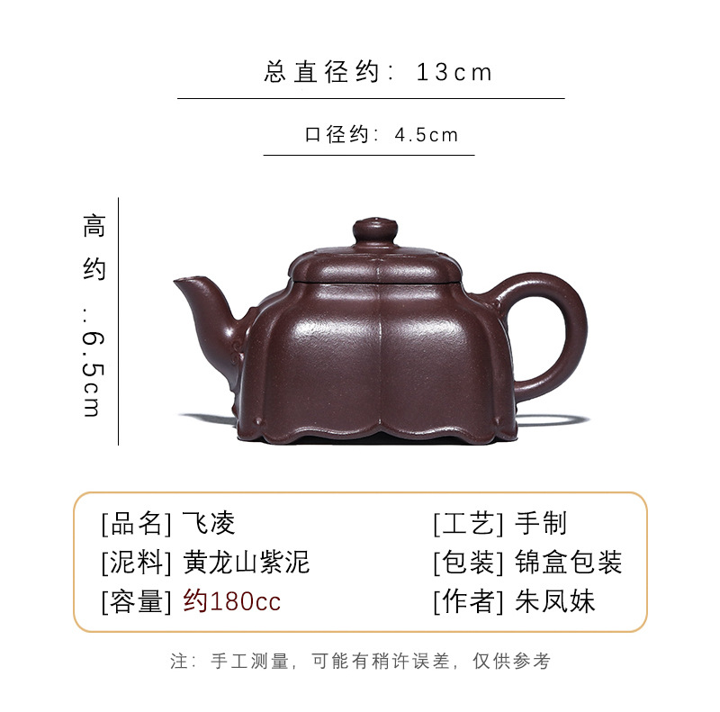 商品名称:宜兴原矿无添加手工紫砂壶黄龙山紫泥飞凌家用茶具茶壶泡茶壶