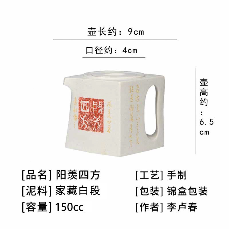 商品名称:宜兴手工紫砂壶珍藏白段证书齐阳羡四方易包浆出水顺畅滴水不漏