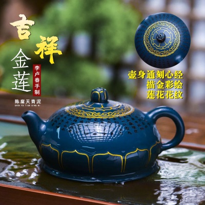 宜兴手工紫砂壶证书全陈腐天青泥吉祥金莲易包浆出水暴爽滴水不漏