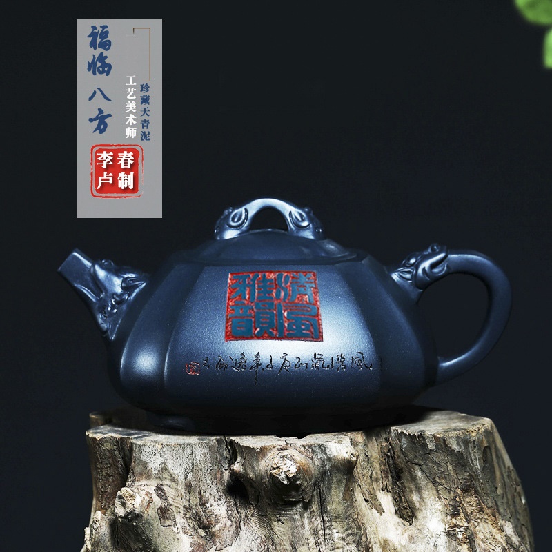 商品名称:宜兴紫砂壶手工壶家藏天青泥证书全 福临八方出水暴爽滴水不漏