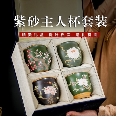 宜兴手工紫砂闻香梅花菊花玉兰牡丹主人杯大口品茗杯功夫茶杯