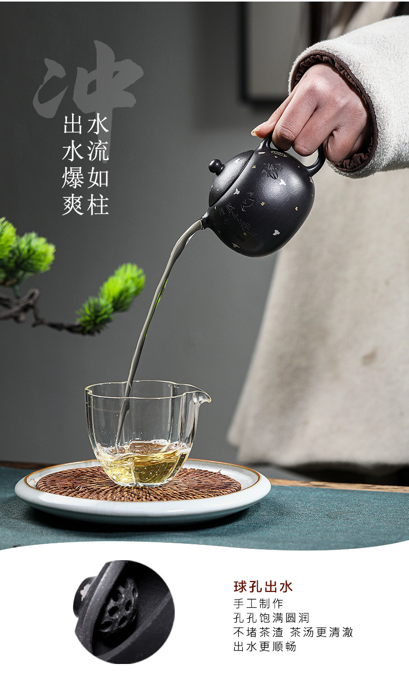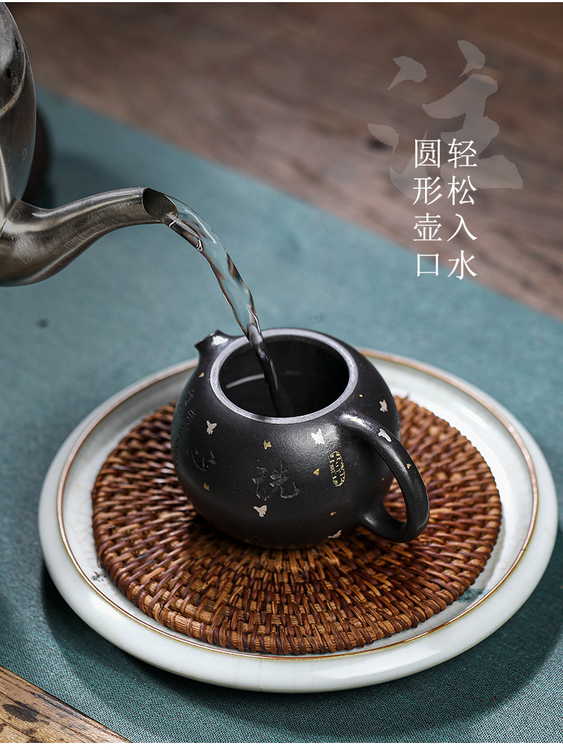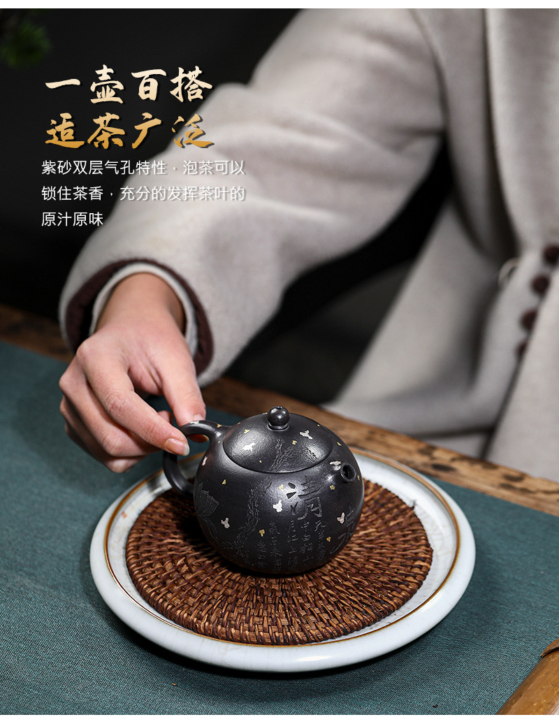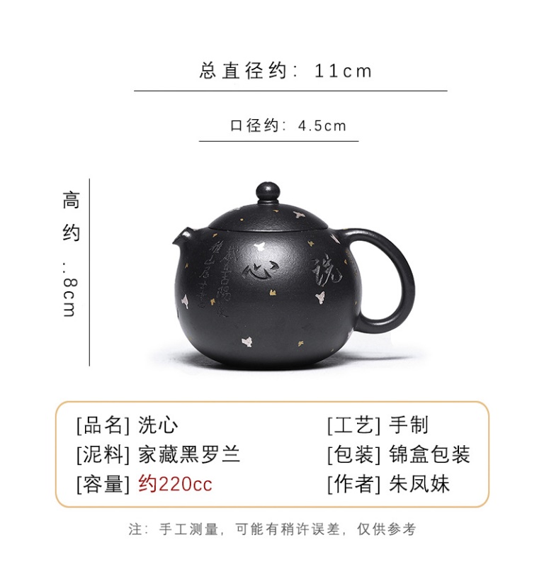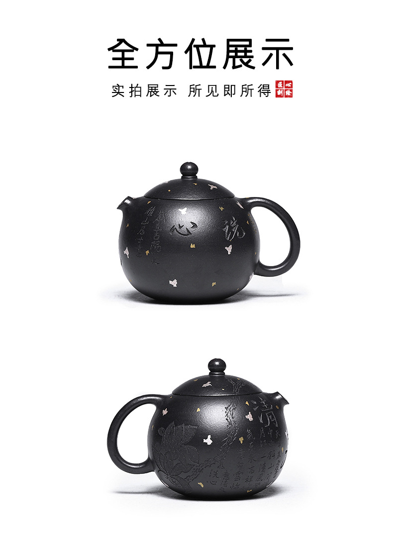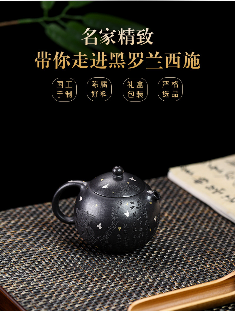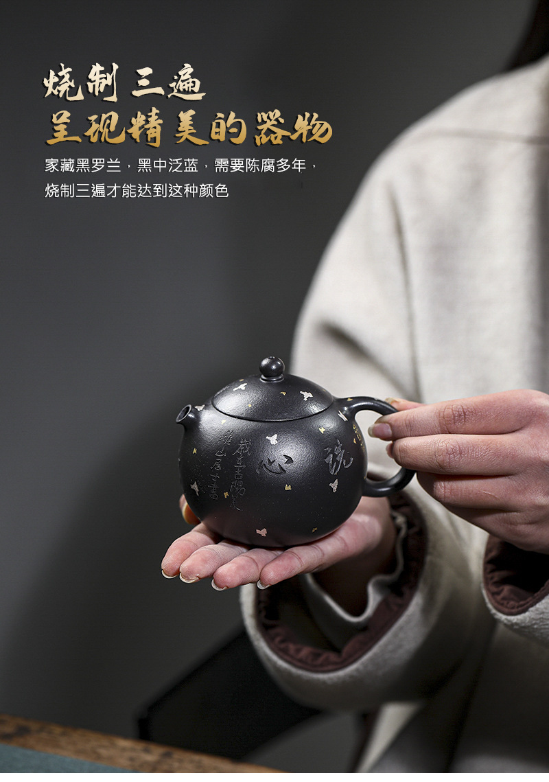 商品名称:宜兴手工紫砂壶家藏黑罗兰洗心西施证书齐全出水爆爽滴水不漏
