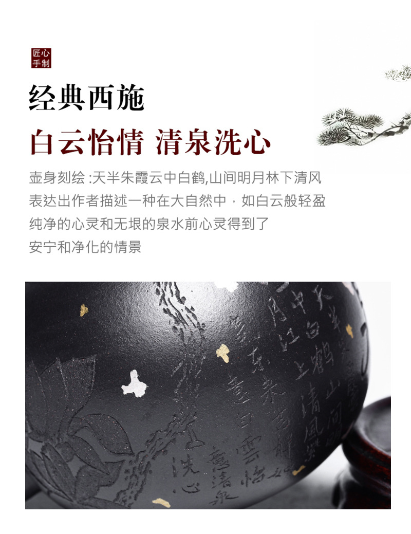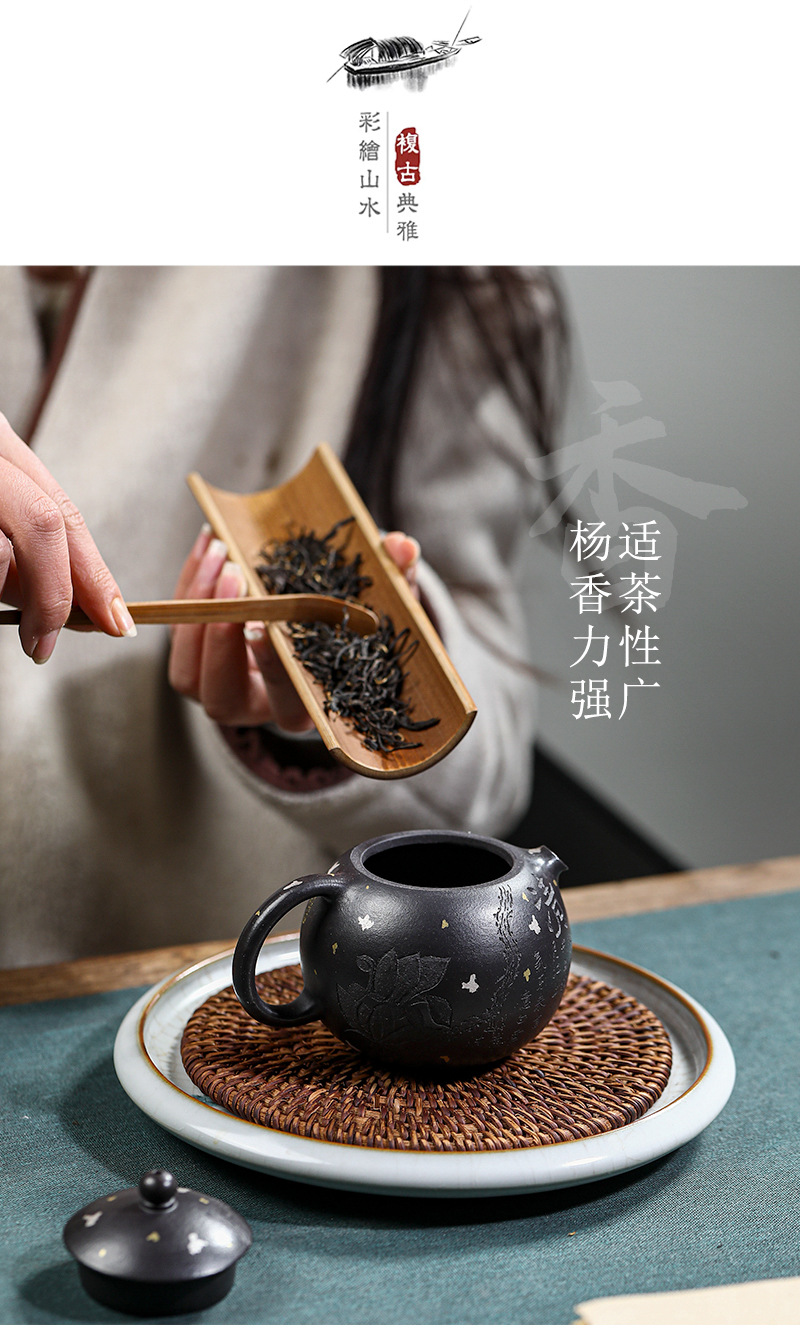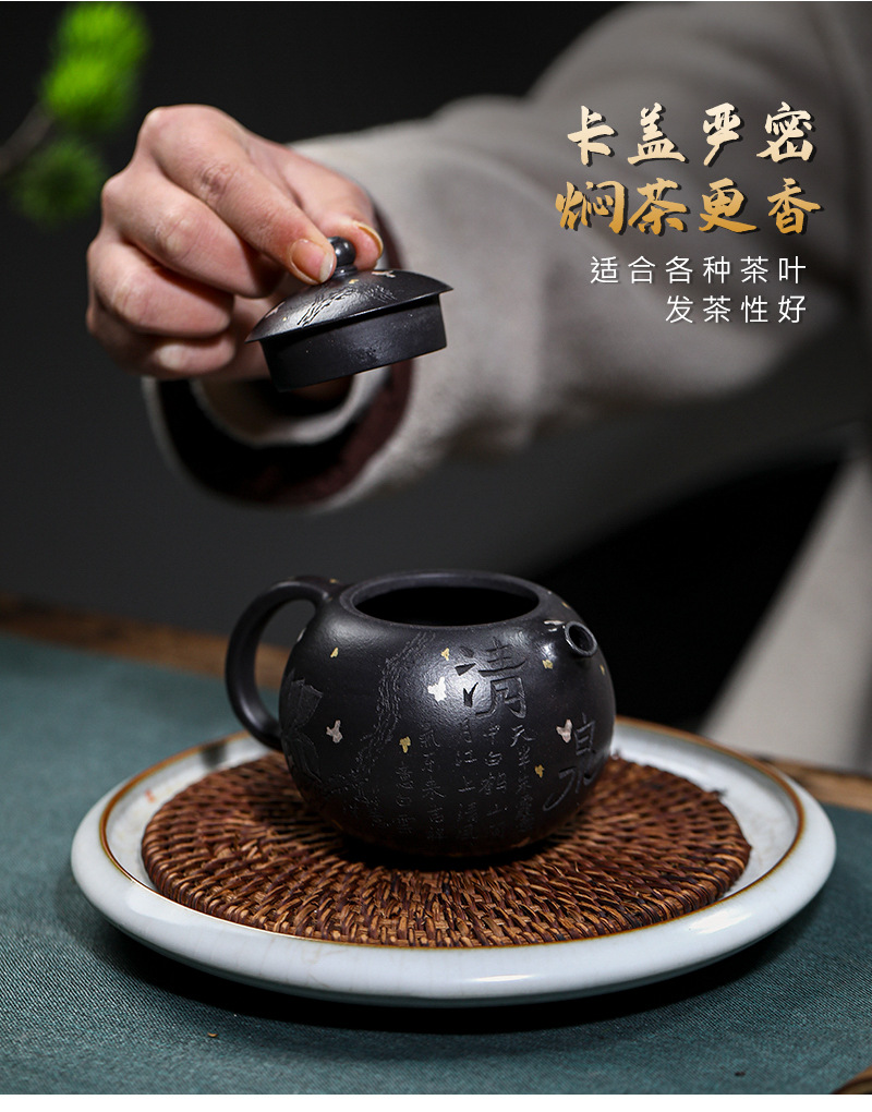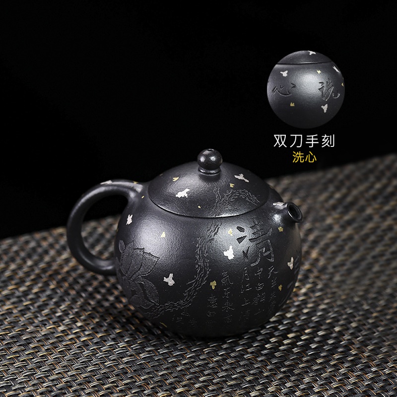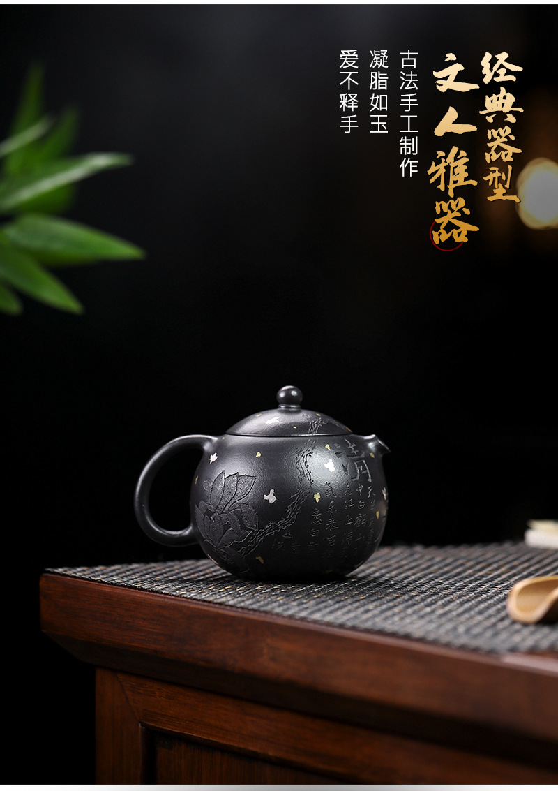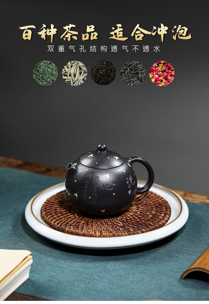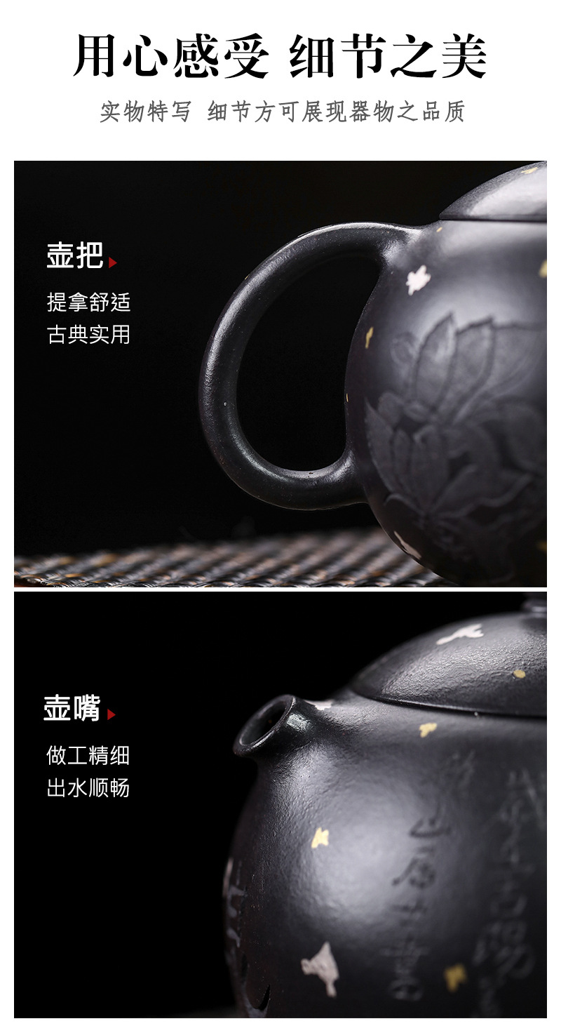 商品名称:宜兴手工紫砂壶家藏黑罗兰洗心西施证书齐全出水爆爽滴水不漏