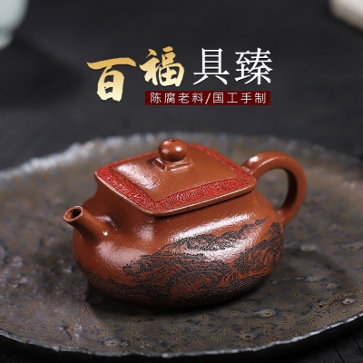 宜兴手工紫砂壶宝山家藏红降坡百福具臻出水爆爽证书齐全