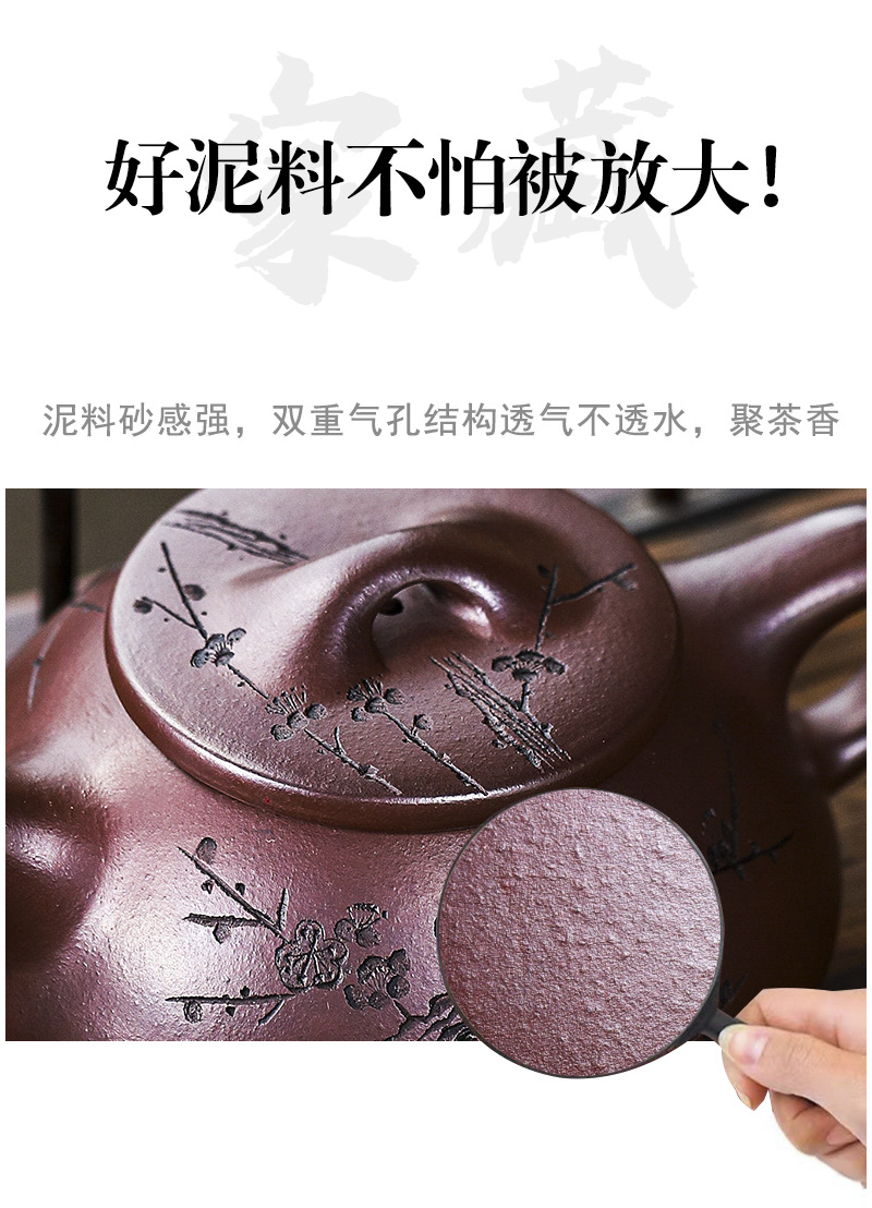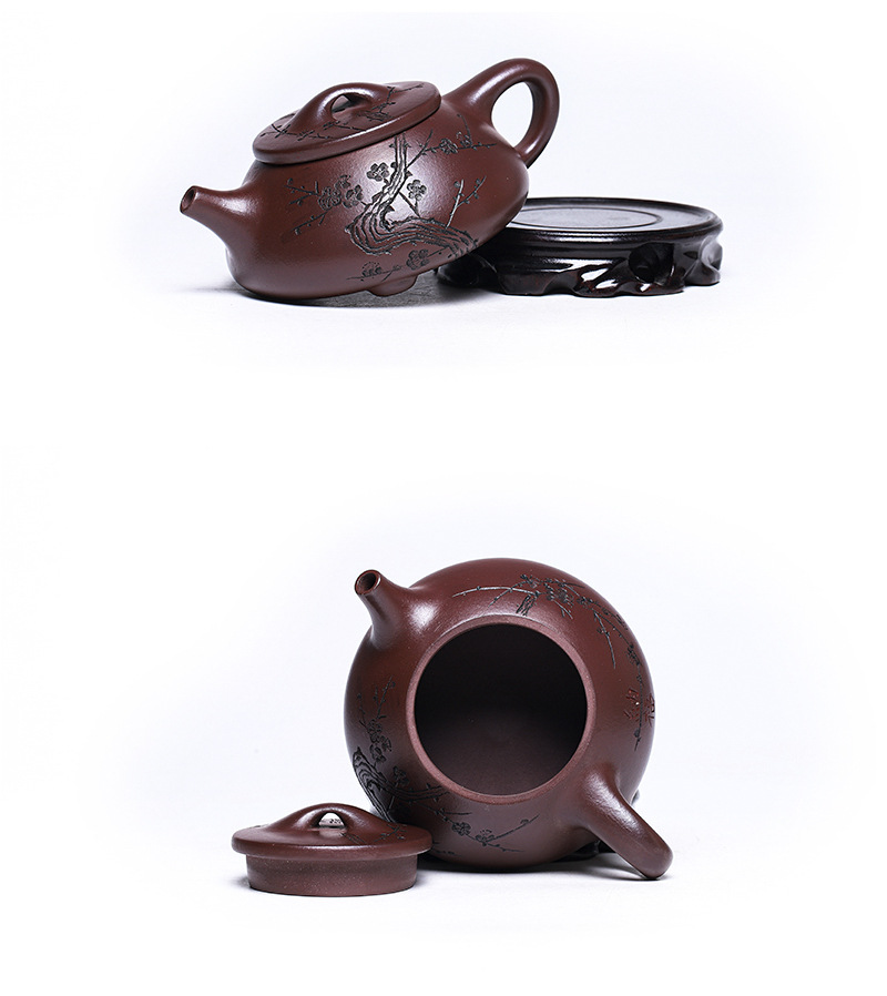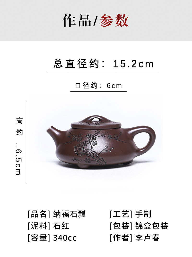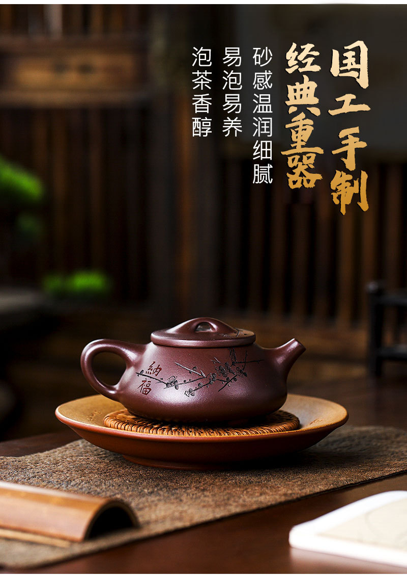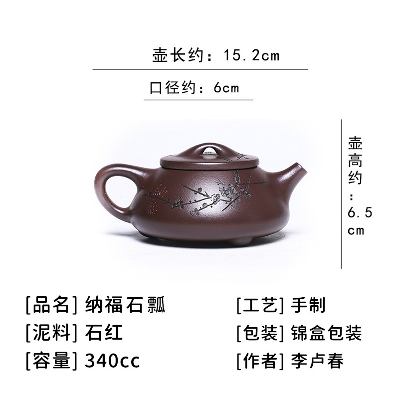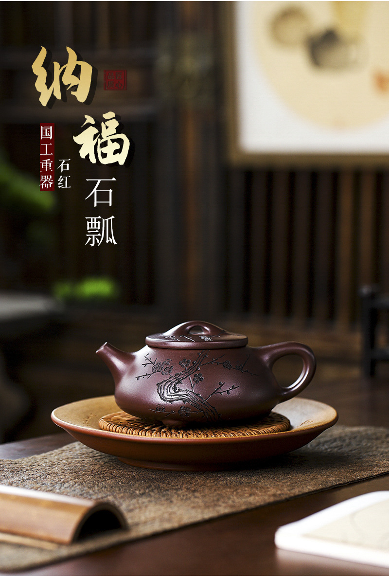 商品名称:宜兴手工紫砂壶证书全石红纳福石瓢泡茶壶易包浆出水暴爽滴水不漏