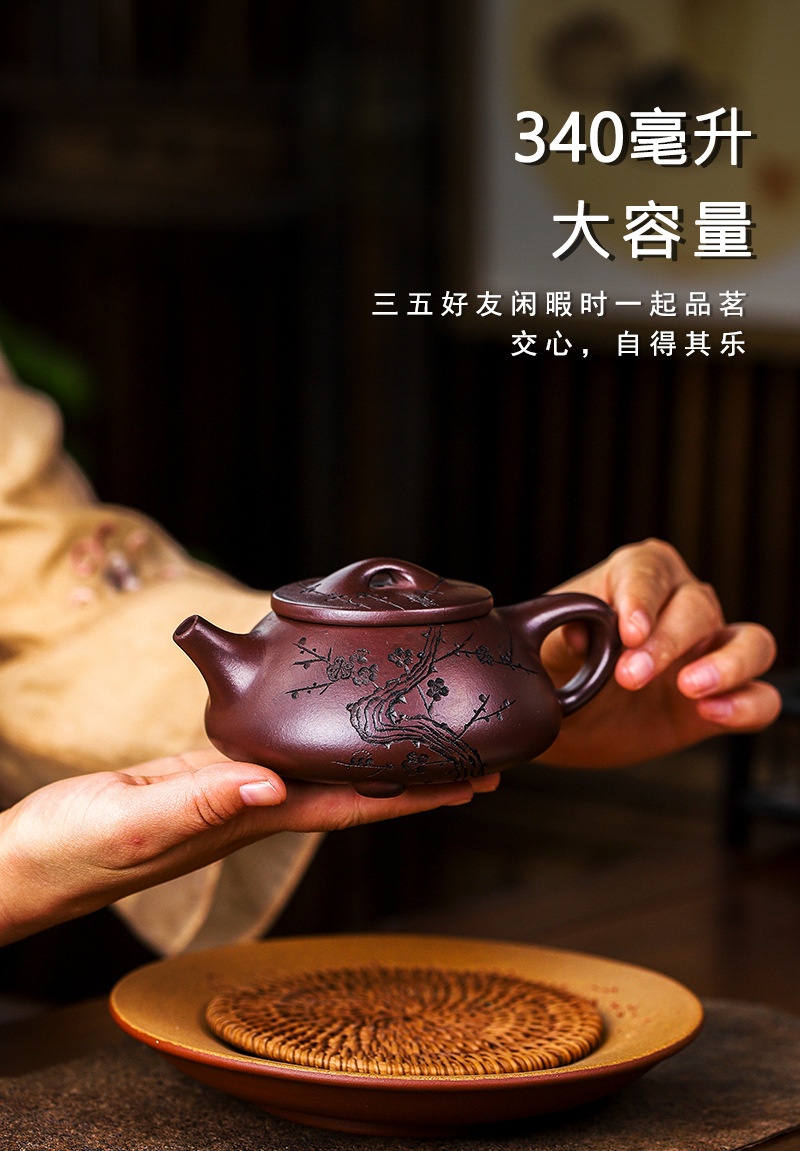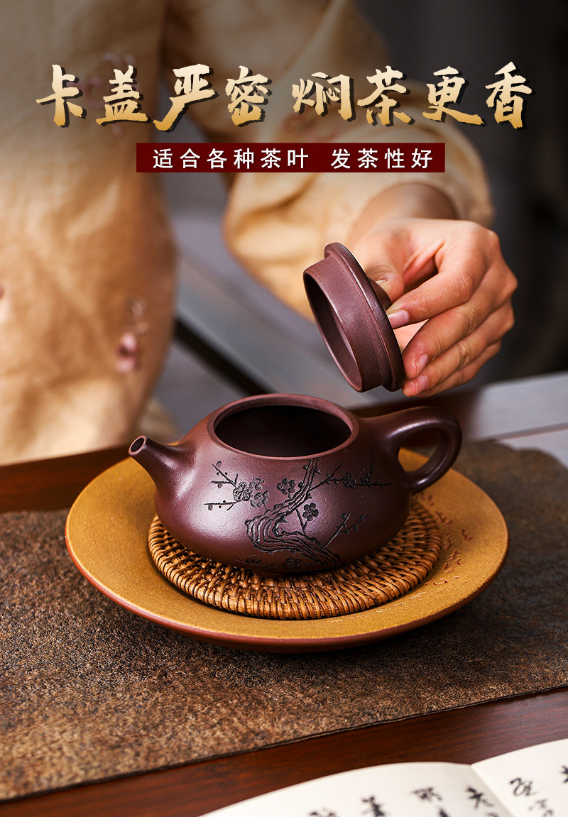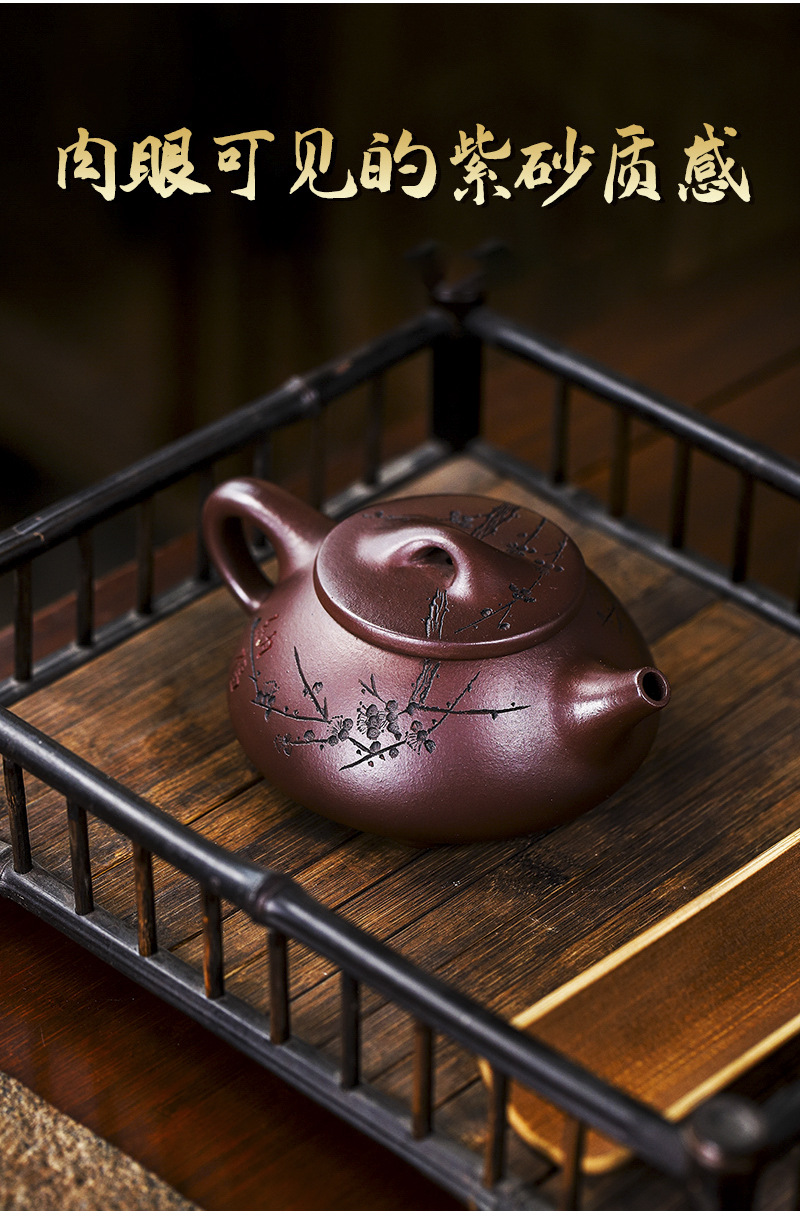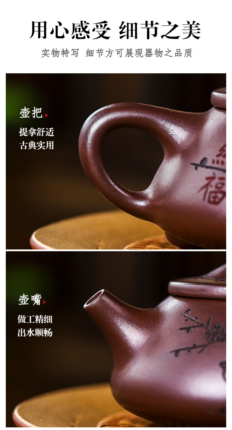 宜兴手工紫砂壶证书全石红纳福石瓢泡茶壶易包浆出水暴爽滴水不漏