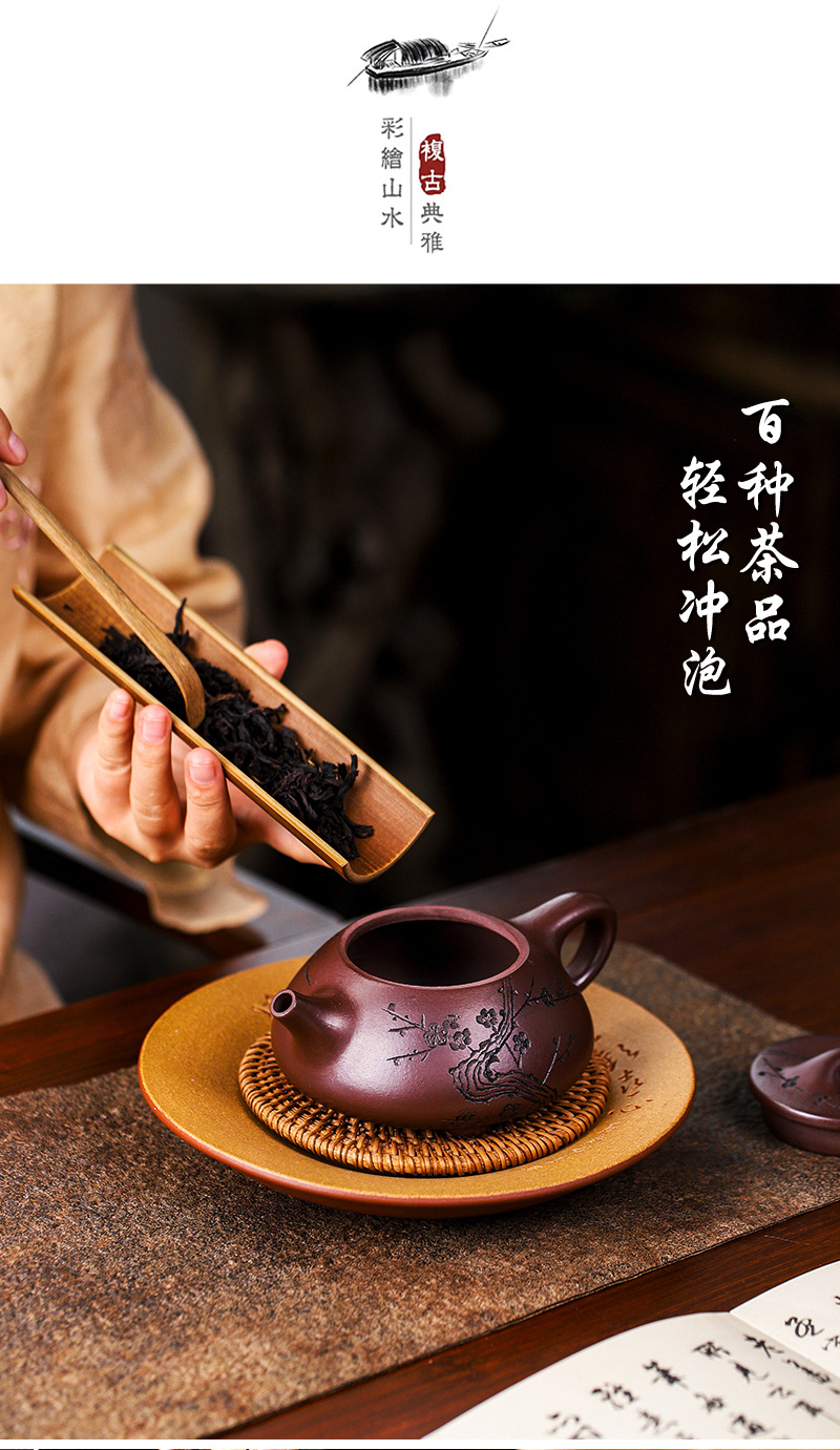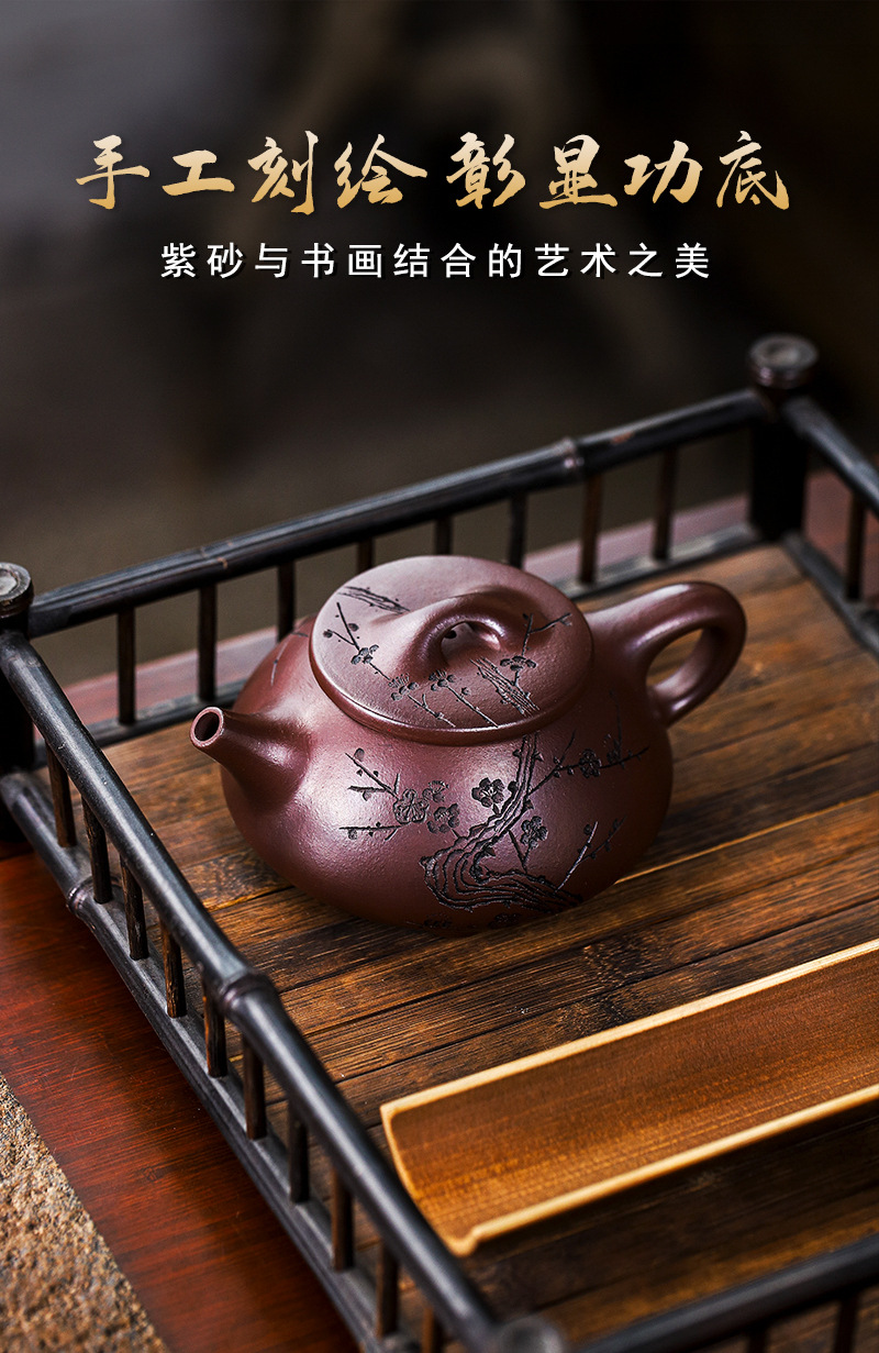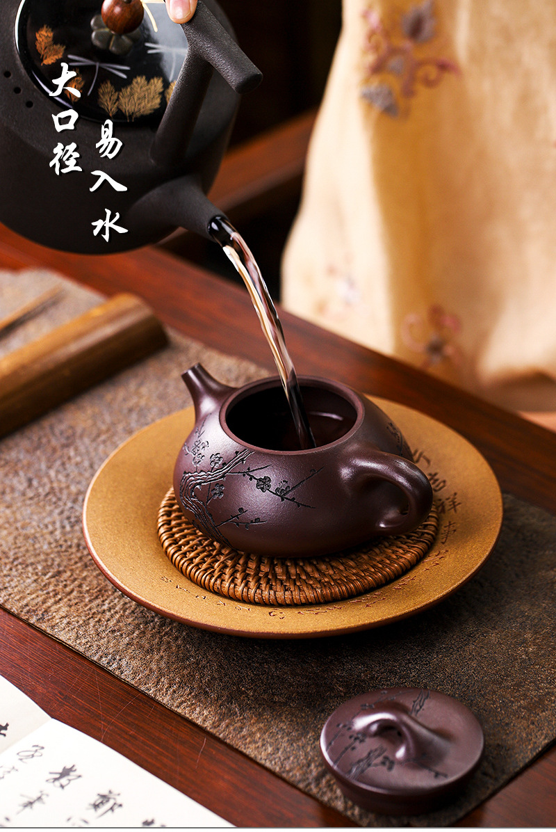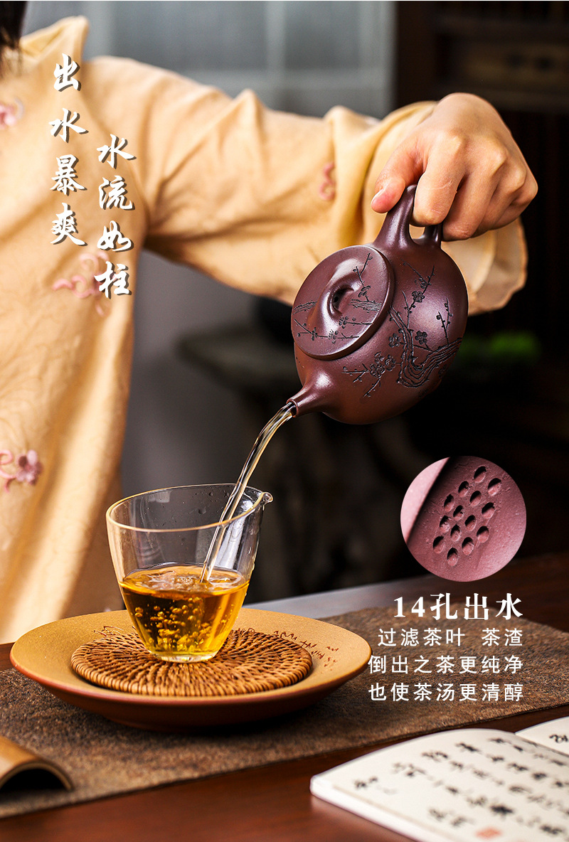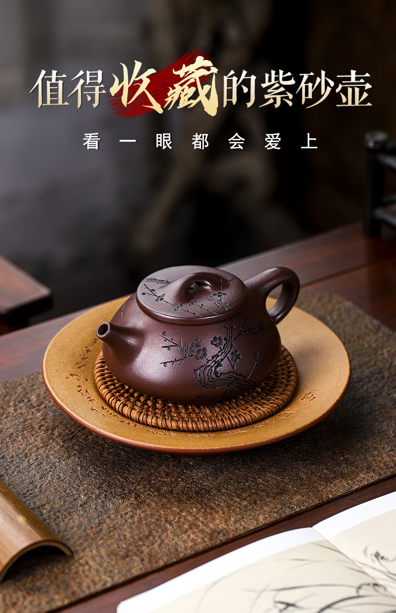 宜兴手工紫砂壶证书全石红纳福石瓢泡茶壶易包浆出水暴爽滴水不漏
