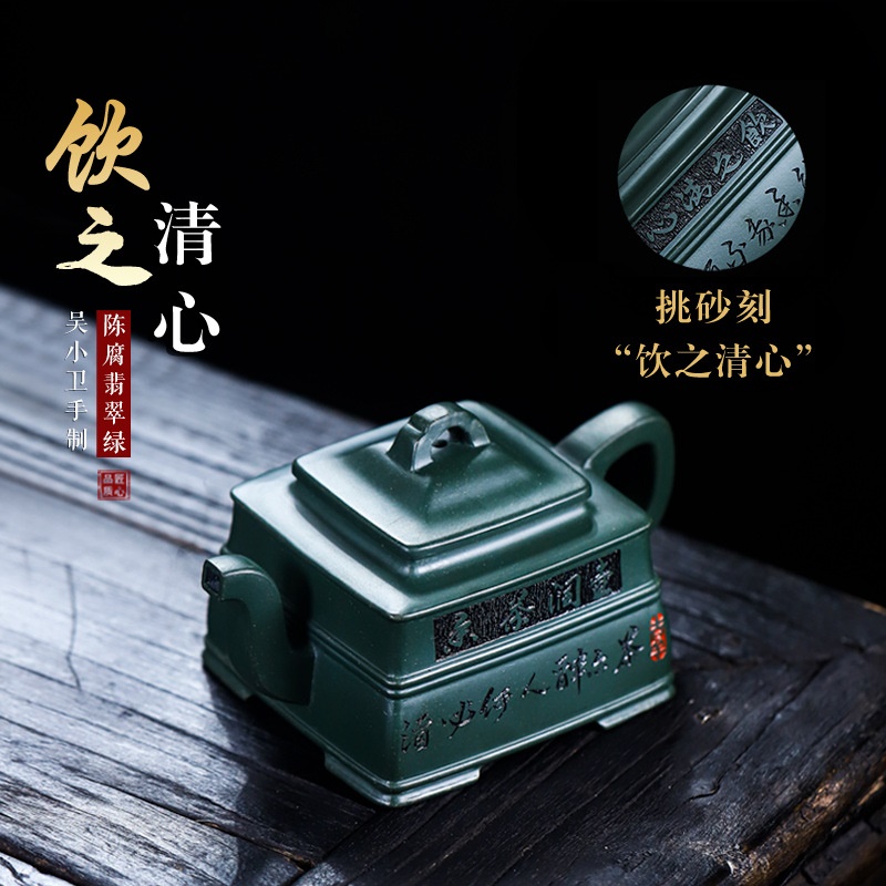 商品名称:宜兴手工紫砂壶证书全陈腐翡翠绿饮之清心易包浆出水暴爽不漏水