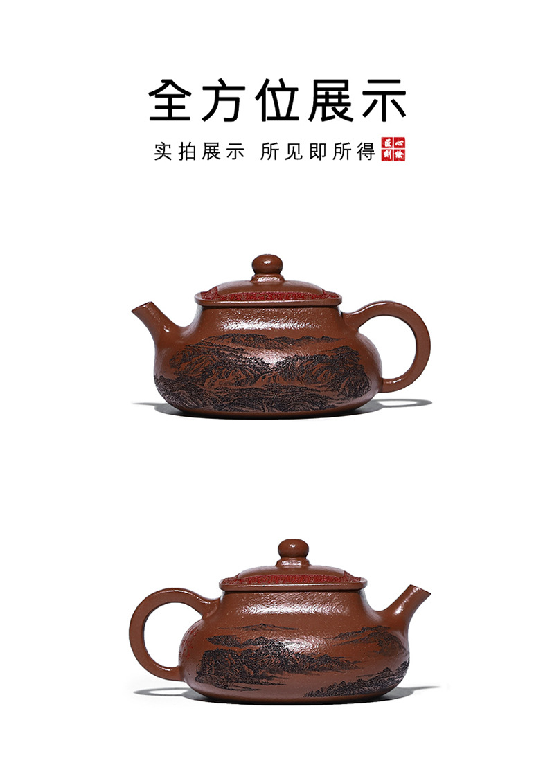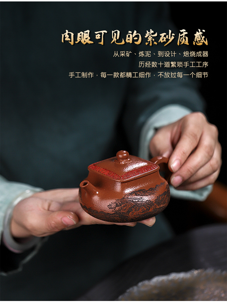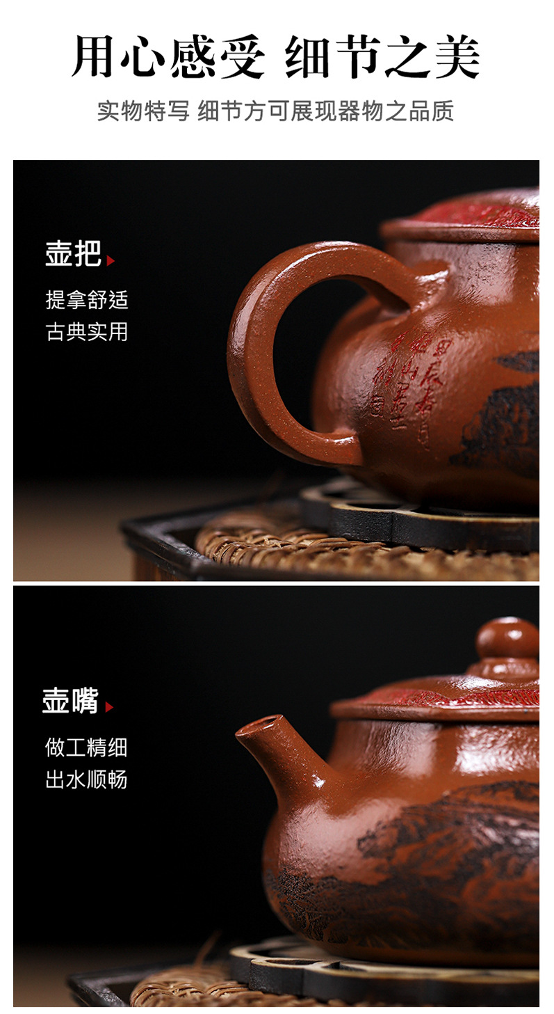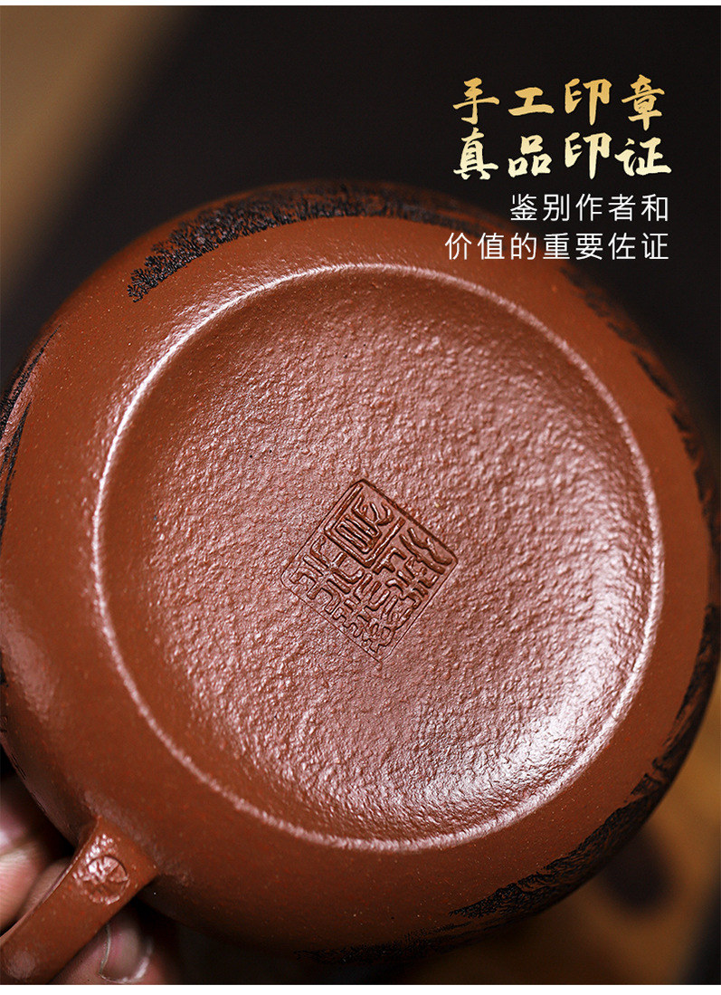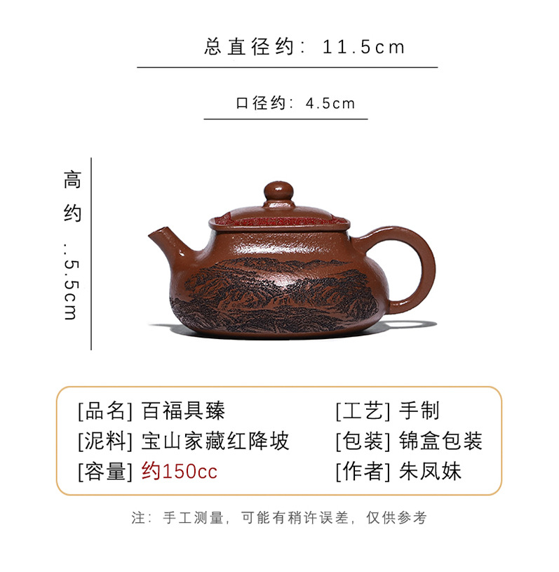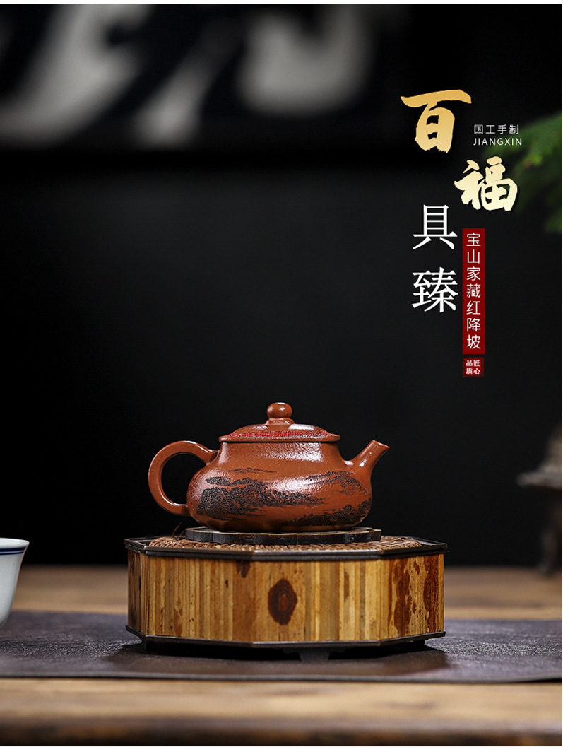 商品名称:宜兴手工紫砂壶宝山家藏红降坡百福具臻出水爆爽证书齐全