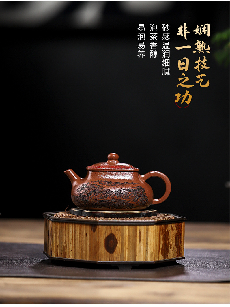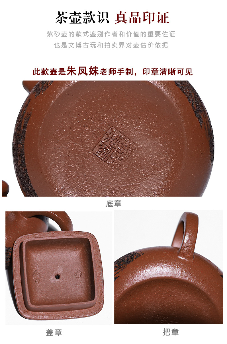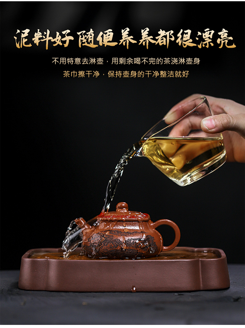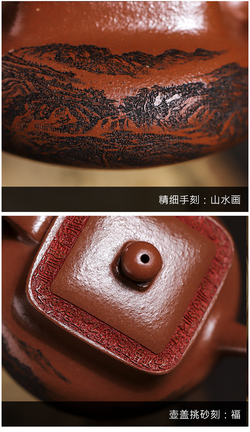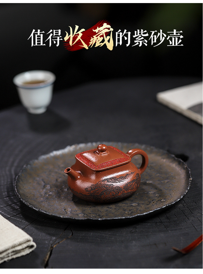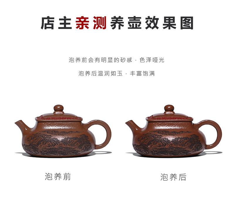 商品名称:宜兴手工紫砂壶宝山家藏红降坡百福具臻出水爆爽证书齐全