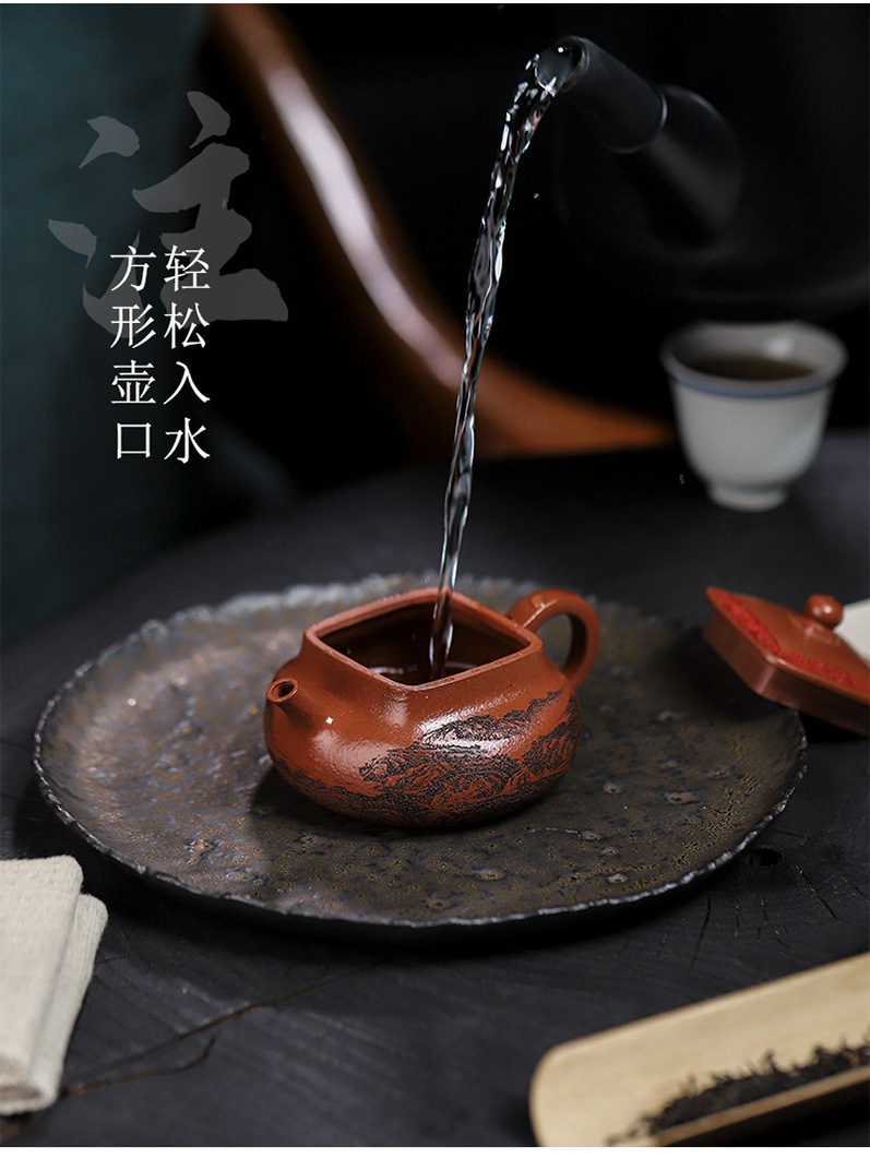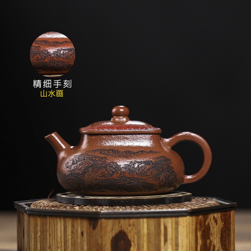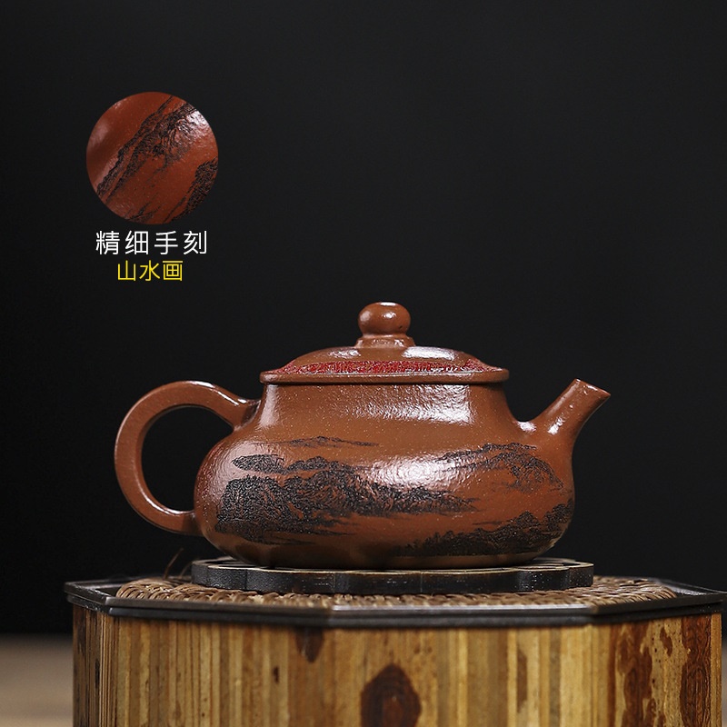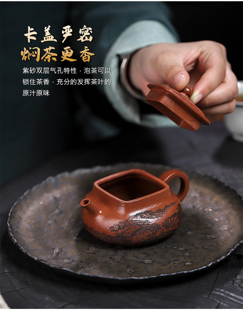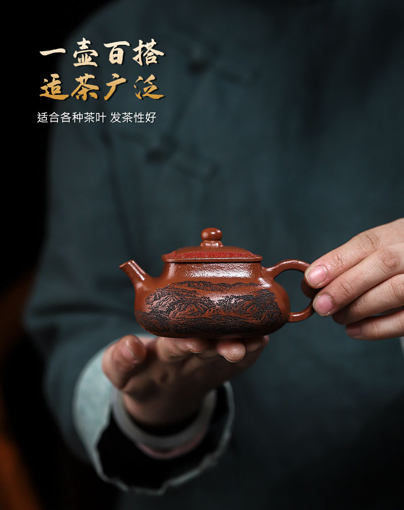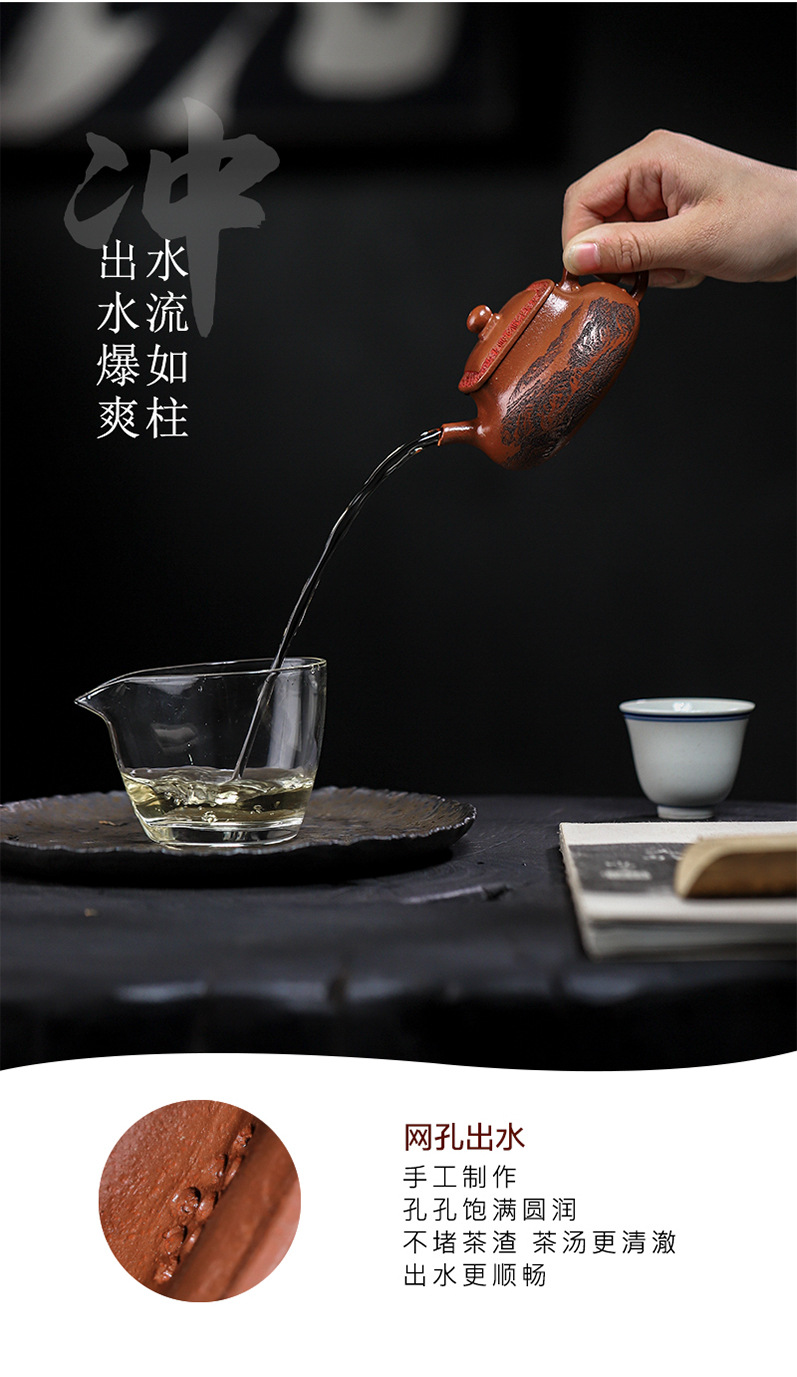 商品名称:宜兴手工紫砂壶宝山家藏红降坡百福具臻出水爆爽证书齐全